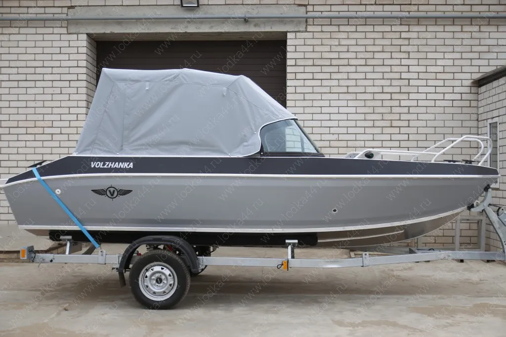 Лодки «Волжанка 49» выполнены в одном корпусе, изготавливаемом из морского алюминия. Толщина корпуса составляет 3 мм, чего вполне достаточно для уверенного хождения большинства равнинных водоемом нашей страны. Разваленные кверху борта компенсирует надстроенный фальшборт, умеющий уклон внутрь. Планширь основного кокпита достаточно узкий и нефункциональный, т.к. частично скрыт глубоким заходом ветрового стекла и низкими поручнями. В компоновке «Фиш» любителям широкой поверхности борта уже интересней. Изгиб борта в плоскости ватерлинии не повторяется в носовой зоне открытого кокпита, форма которого является трапецией.