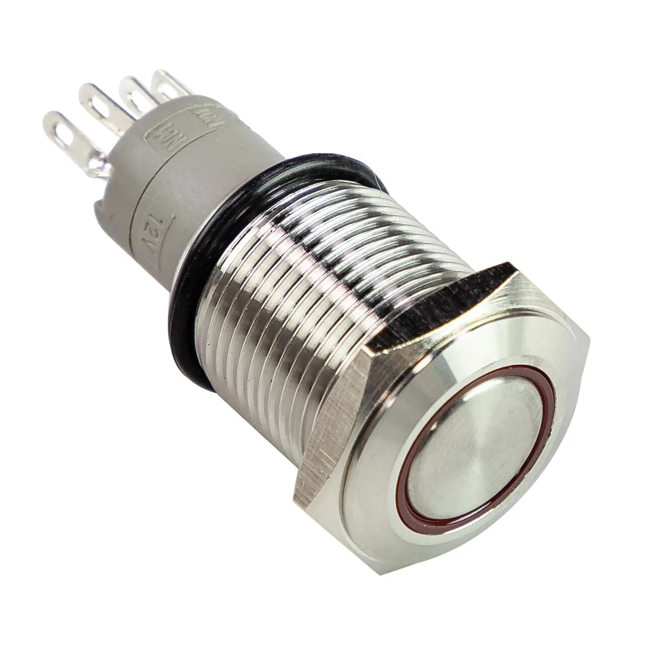 Кнопка включения с красной подсветкой. Без фиксации положения ВКЛ-ВЫКЛ.