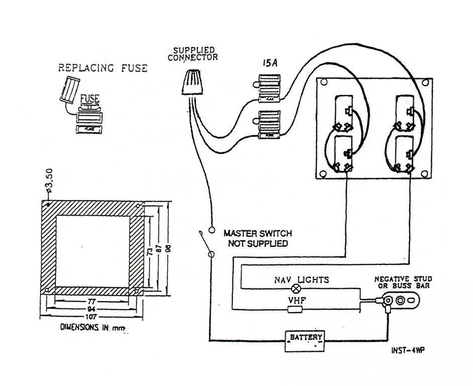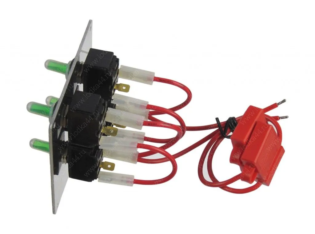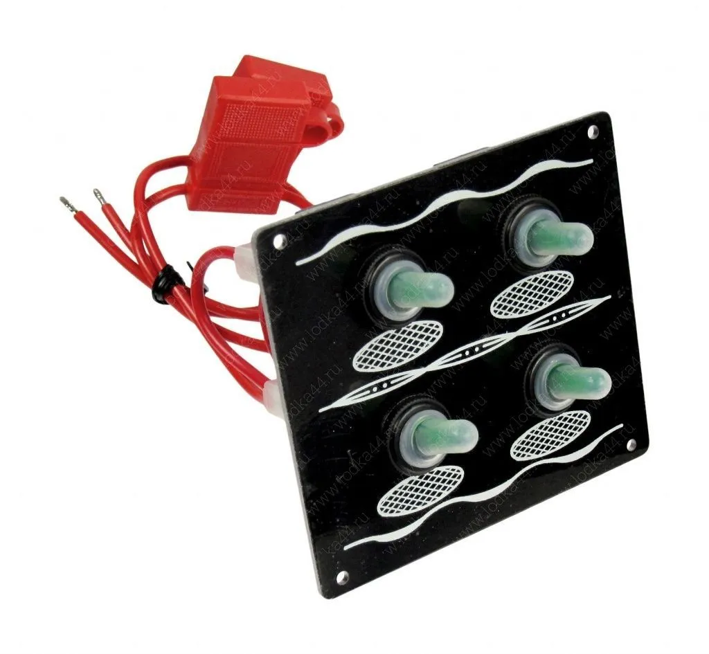 Панель водонепроницаемая оснащена переключателями в резиновых колпачках с двумя предохранителями 15 А.