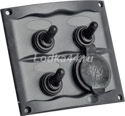 Панель электрическая водонепроницаемая оснащена 3-мя герметичными двухпозиционными переключателями 20 А в резиновых колпачках и стандартным гнездом с герметичной резиновой крышкой. С предохранителями.