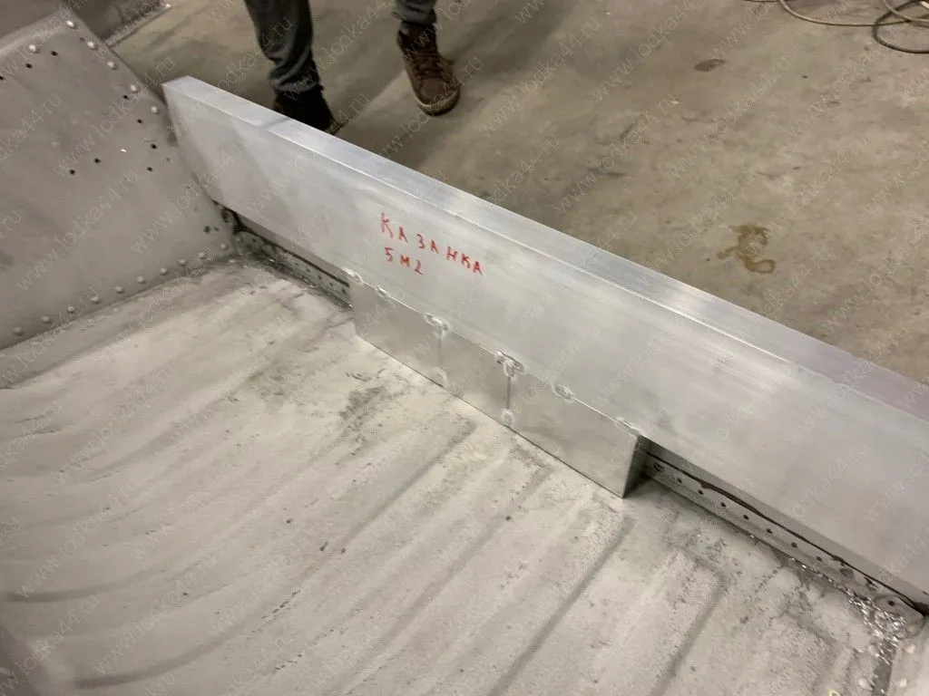 В комплект входит сварная вставка транца, набор алюминиевых профилей, обеспечивающих необходимую жесткость конструкции, полиуретановый герметик, болты и клёпки для установки. Подробная инструкция.