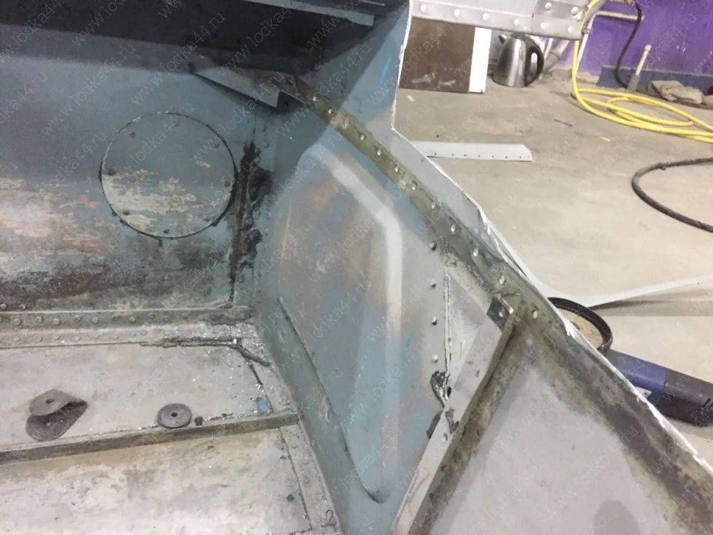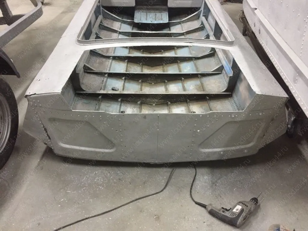 В комплект входит сварная вставка транца, изготовленная из АМГ сплава 3 мм, набор алюминиевых профилей, обеспечивающих необходимую жесткость конструкции, полиуретановый герметик, болты и клёпки для установки.