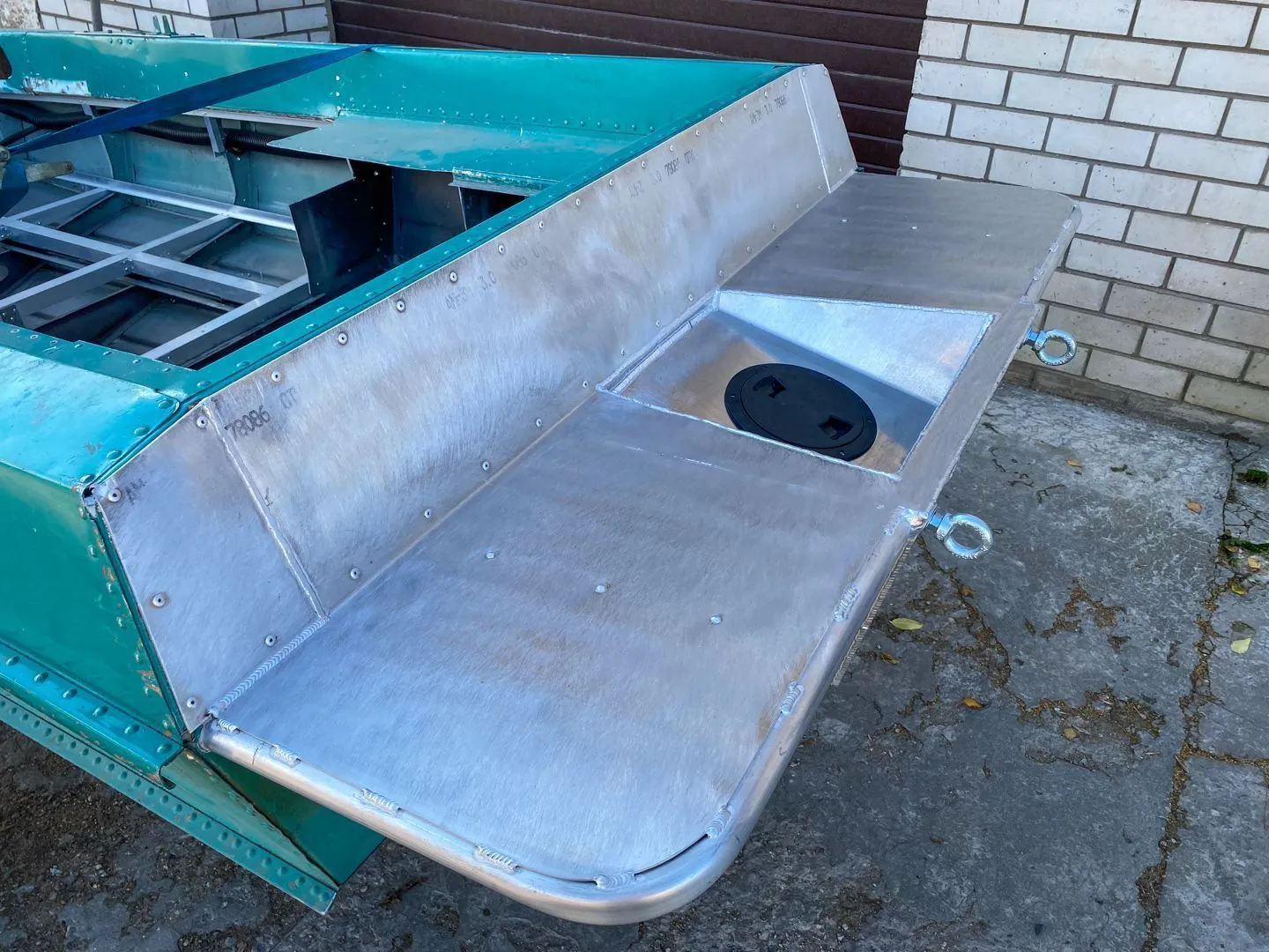 В комплект входит сварная конструкция транца, изготовленная из АМГ сплава 3 мм, набор алюминиевых профилей, обеспечивающих необходимую жесткость конструкции, полиуретановый герметик, болты и клёпки для установки.