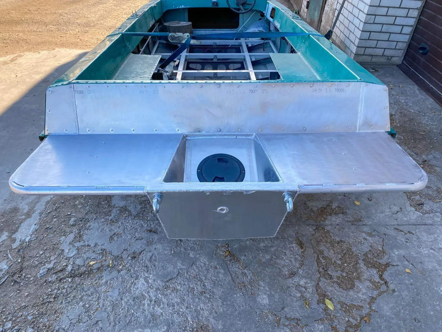 Конструкция изготовлена из листов и профилей алюминиевого сплава и представляет из себя центральный герметичный элемент совмещаенный с транцевой платформой. . Выносной транец предполагает демонтаж существующего транца.