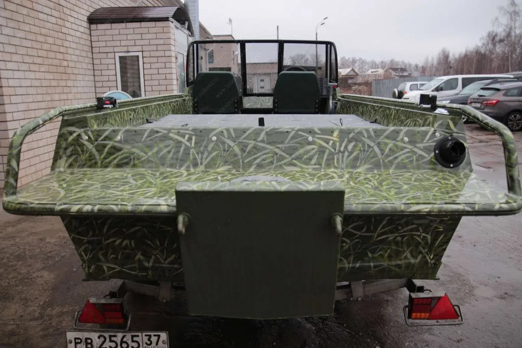 Конструкция изготовлена из листов и профилей алюминиевого сплава и представляет из себя центральный герметичный элемент совмещаенный с транцевой платформой. . Выносной транец предполагает демонтаж существующего транца.