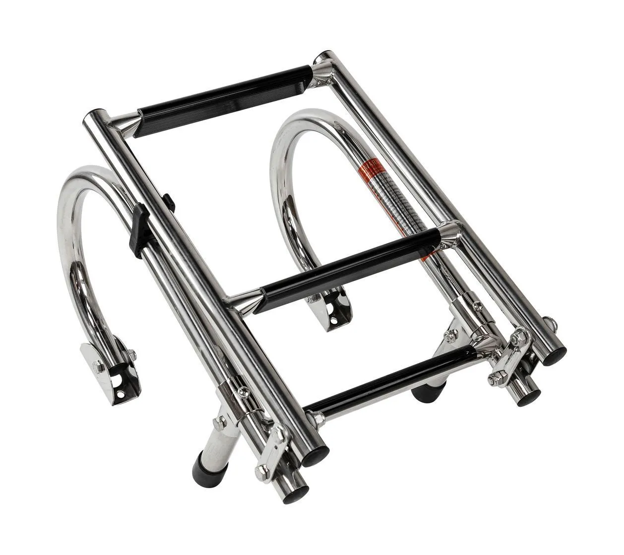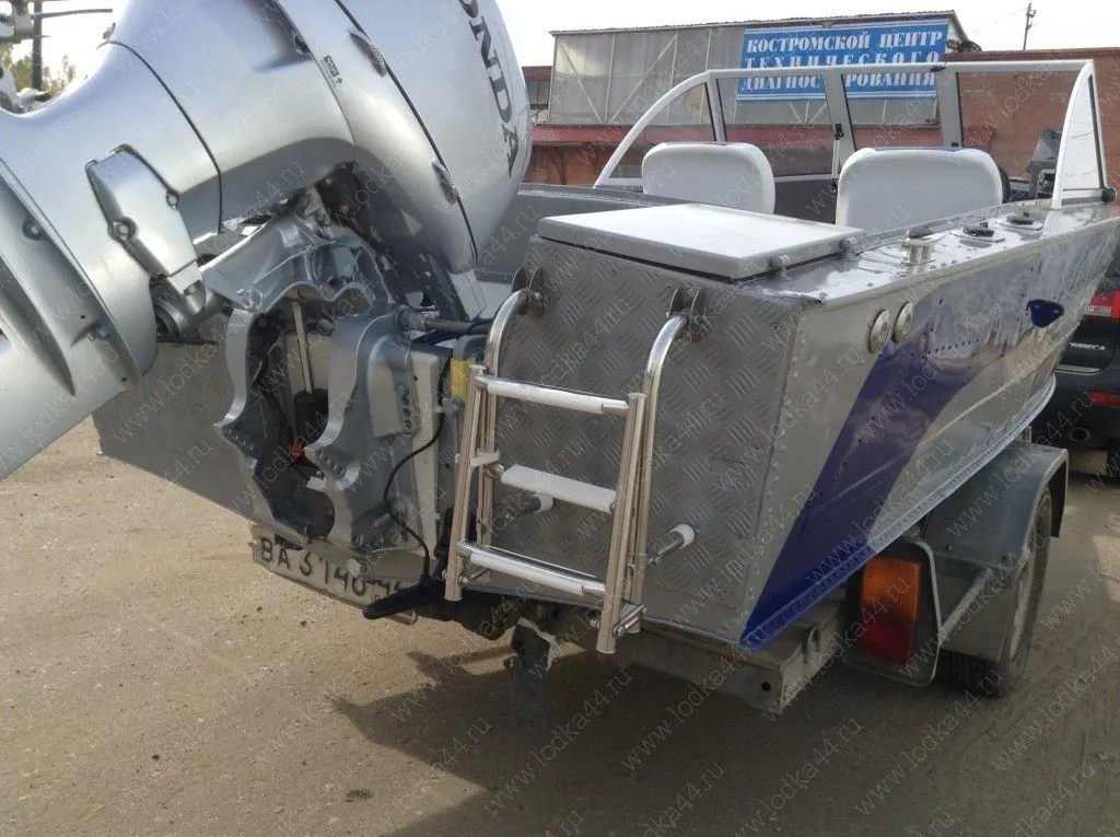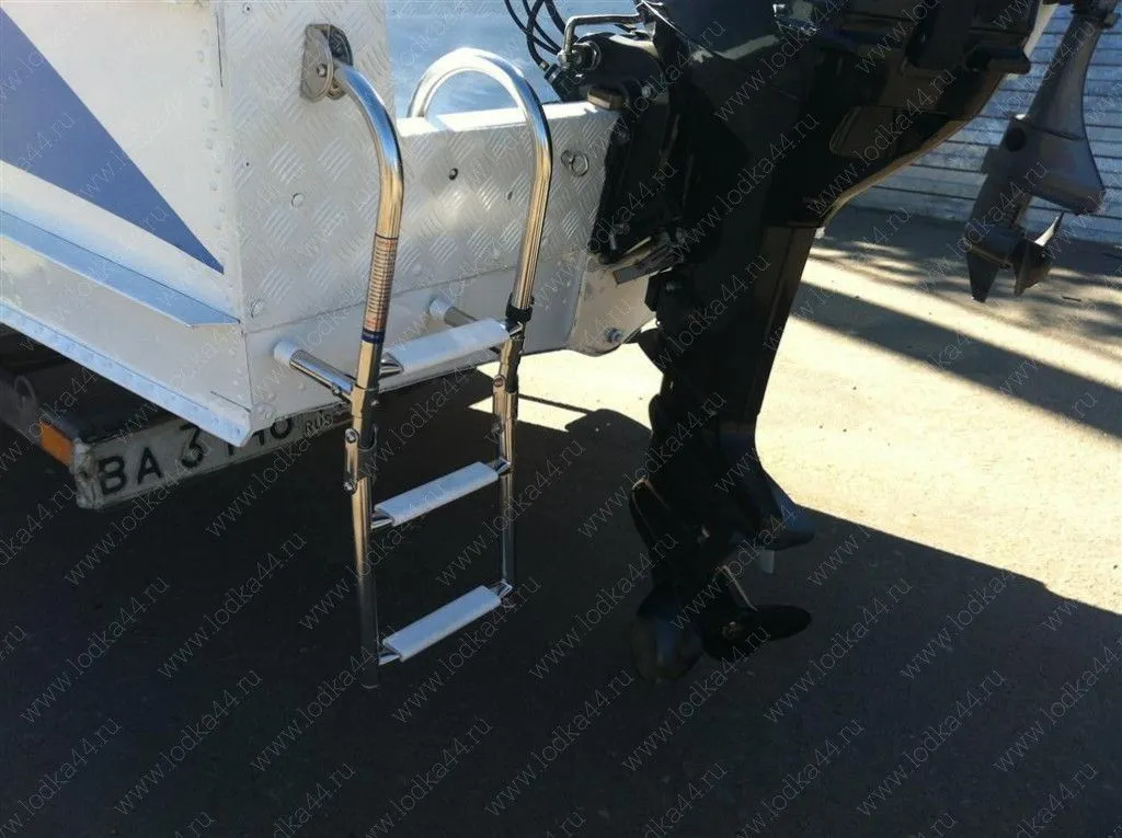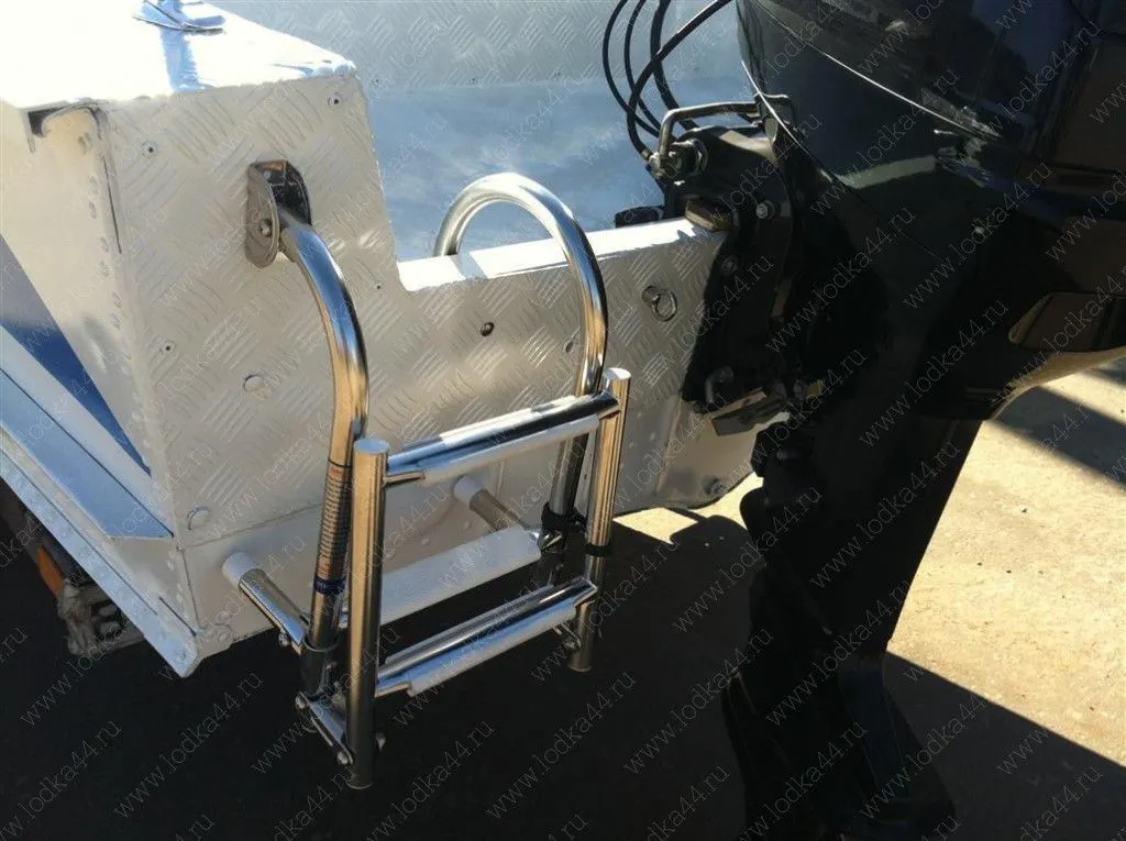 Трап складной кормовой имеет три ступени с противоскользящим покрытием черного цвета.