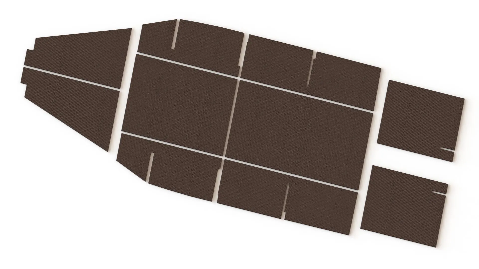 Комплект пайол (сланей) на лодку «Казанка-5М» изготовлен из влагостойкой ламинированной фанеры толщиной 9 мм.