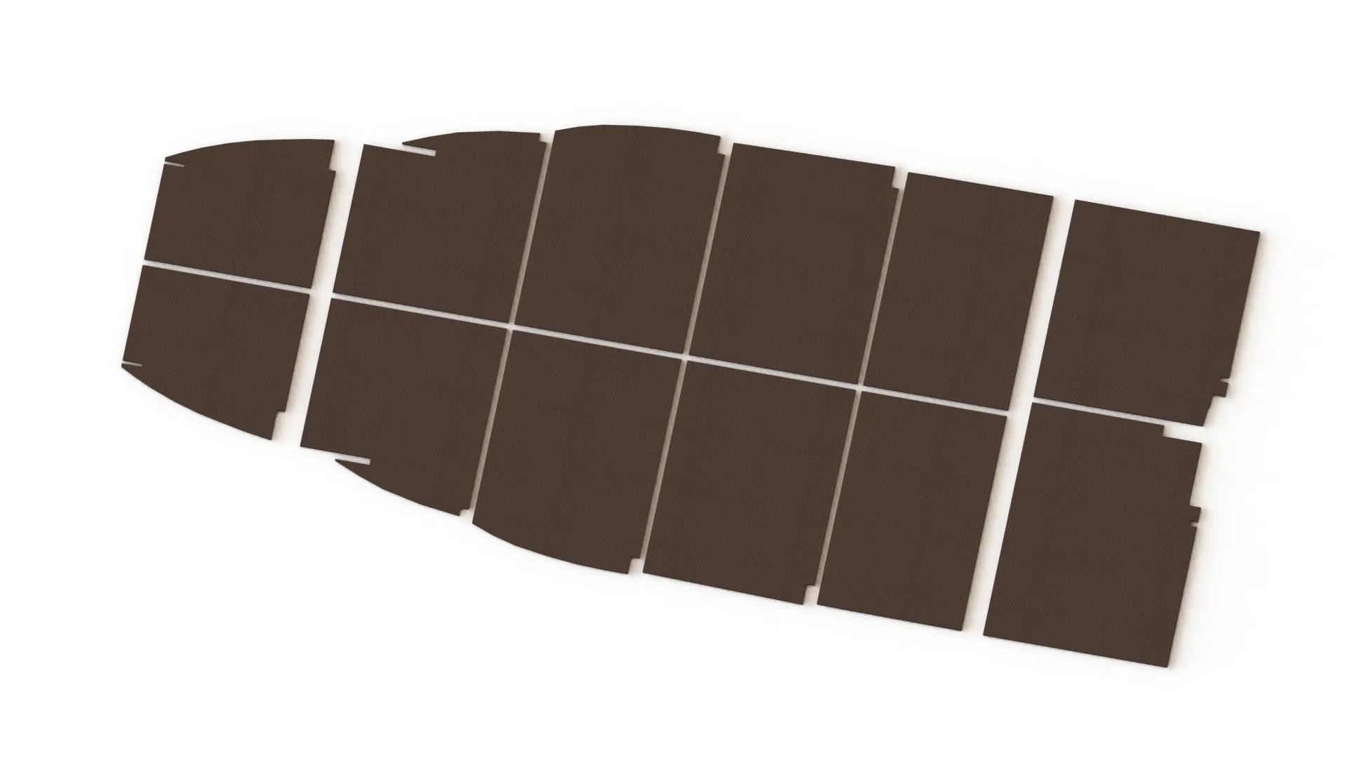 Комплект пайол (сланей) на лодку «МКМ (Ярославка)» изготовлен из влагостойкой ламинированной фанеры толщиной 9 мм из 12-ти элементов.
