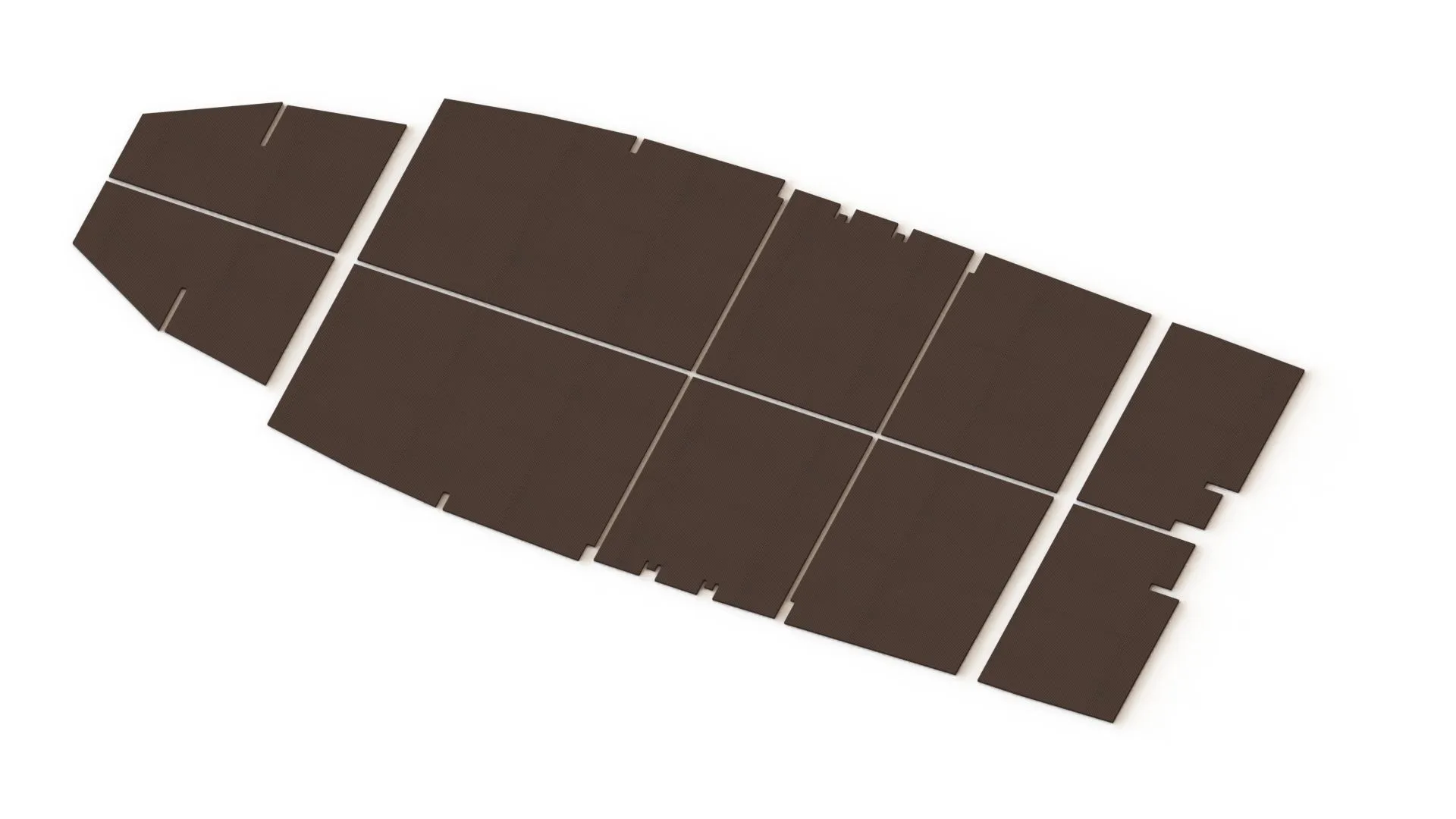 Комплект пайол (сланей) на лодку «Прогресс-2» изготовлен из влагостойкой ламинированной фанеры толщиной 9 мм. Состоит из 10 -ти элементов: 6 элементов кокпита, 2 подмоторной ниши, 2 носовой отсек.