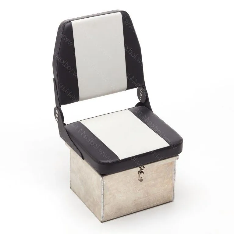 Сиденье на лодку имеет складывающуюся спинку. Мягкие подушки выполнены из высококачественного винила приспособленного к эксплуатации в морских условиях. Кронштейны изготовлена из алюминия, имеют повышенную прочность. Крепление кресла осуществляется с помощью 4-х саморезов к ровной поверхности. Пьедестал ,переходник, стойка , ящик в комплект не входят.