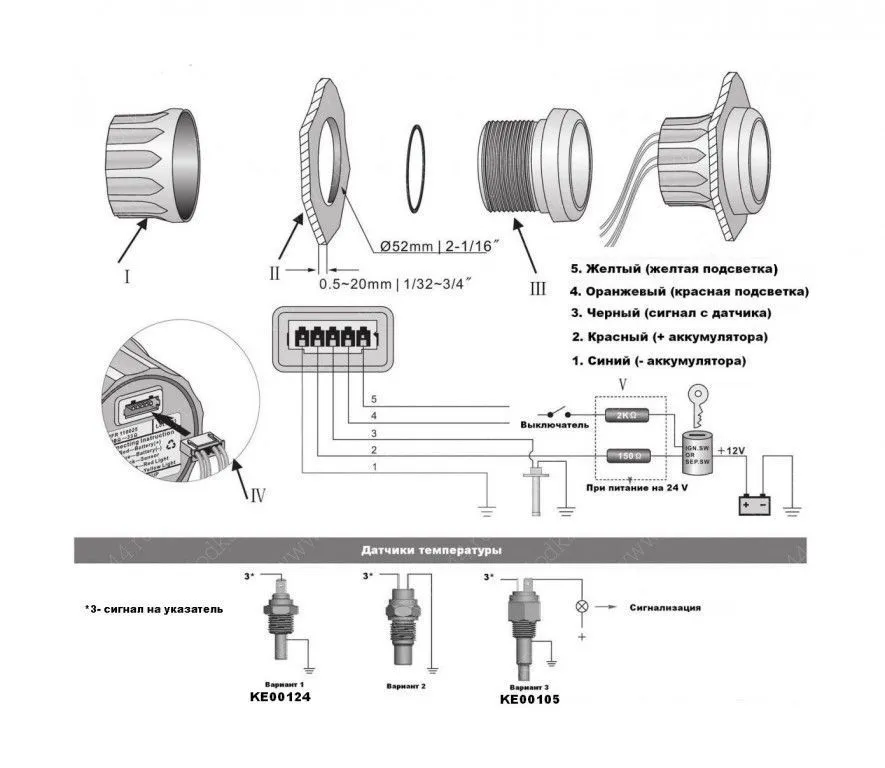 Метрический, посадочный диаметр 53 мм. Служит для измерения температуры лодочного мотора.