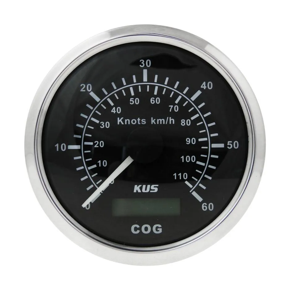 Спидометр-GPS со шкалой до 60 узлов +антена, KUS (черный циферблат)