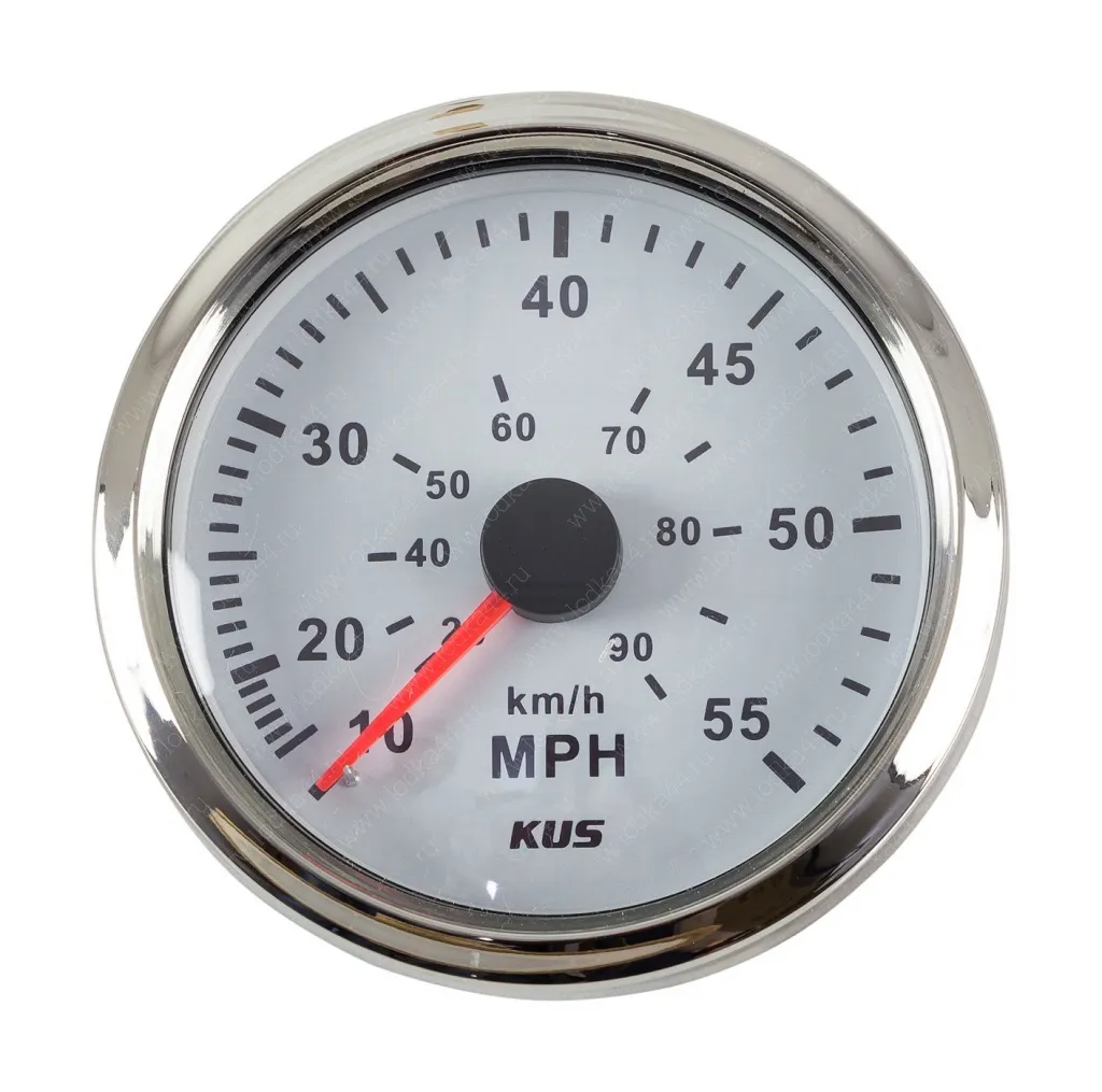 Спидометр аналоговый со шкалой измерения 0-90 км/ч. (0-55 миль/час). Датчик скорости (датчик лага) трубка "пито" приобретается отдельно (см. по сноске /upload/dev2fun.imagecompress/webp/iblock/814/8147cf66869b017ffbb26efc8dc91ace.webp ).Прибор можно использовать со штатно-установленной трубкой Пито на лодочном моторе.