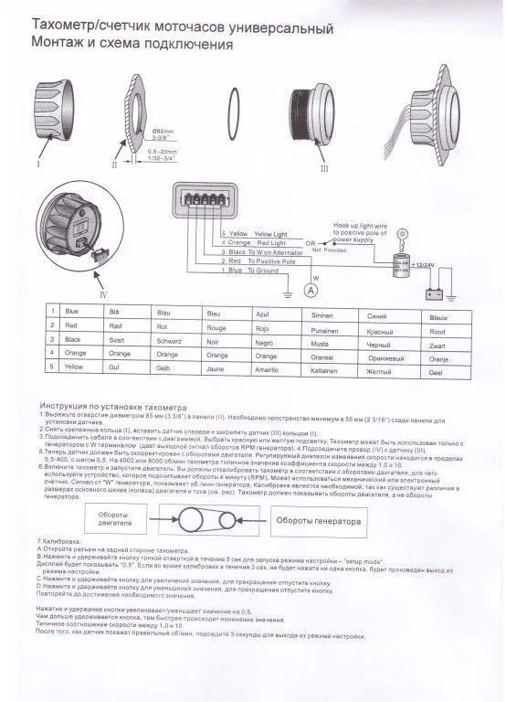 Тахометр для лодочного мотора универсальный со встроенным счетчиком моточасов (встроен жидкокристаллический дисплей). Показания счетчика хранятся в энергонезависимой памяти.