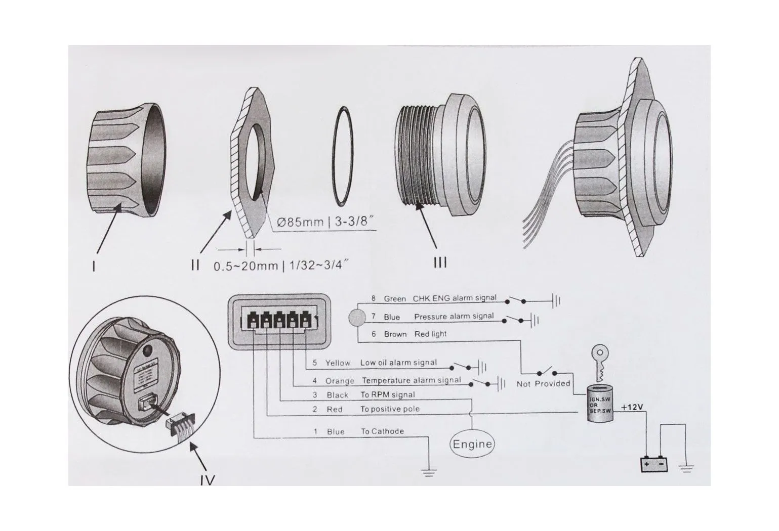 Тахометр со счетчиком моточасов 7000 об/мин+ аварийная сигнализация, черный (MR)