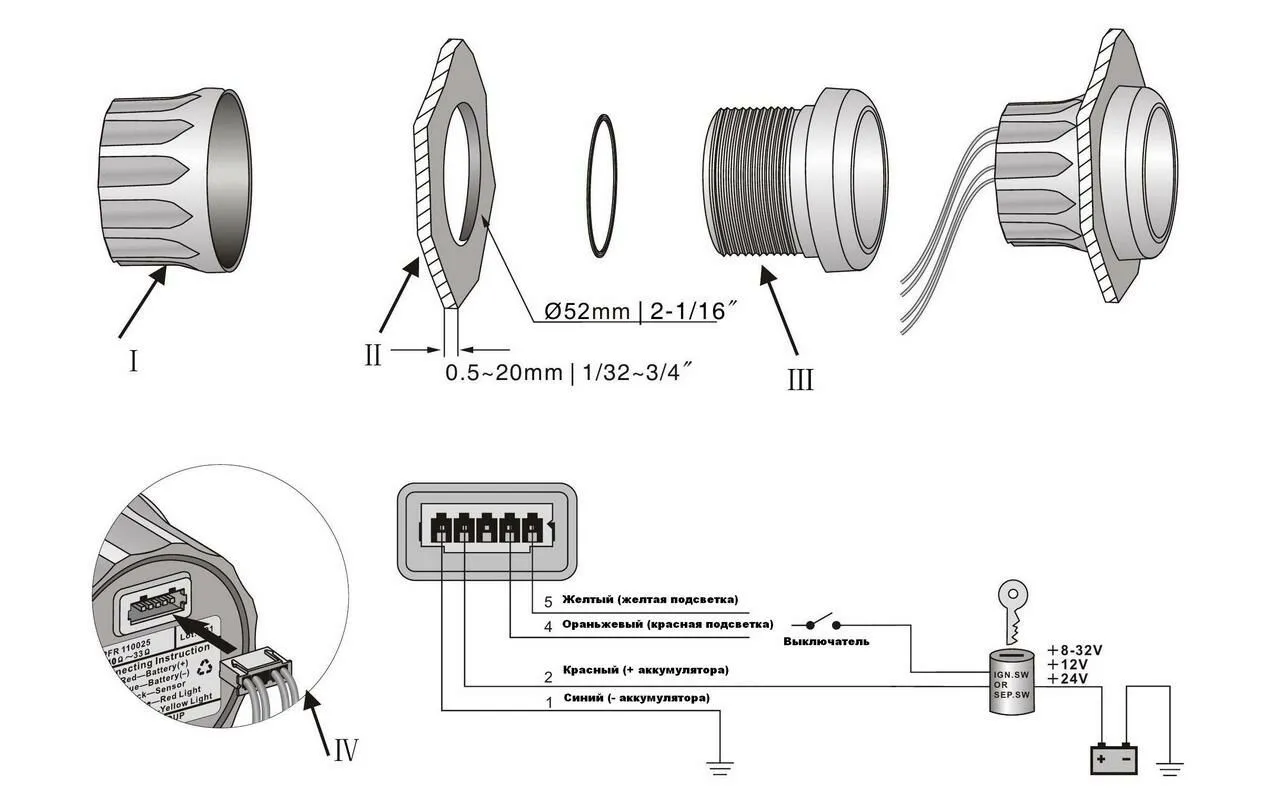 Подсветка прибора может быть как красной так и желтой, цвет зависит от варианта подключения контактов