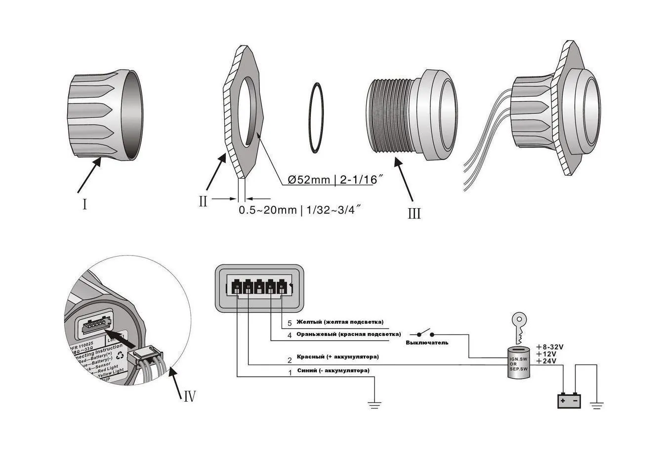 Монтажный вырез: 52 мм