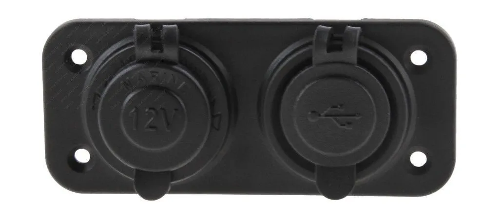 Разъем с USB и прикуривателем, врезной, черный