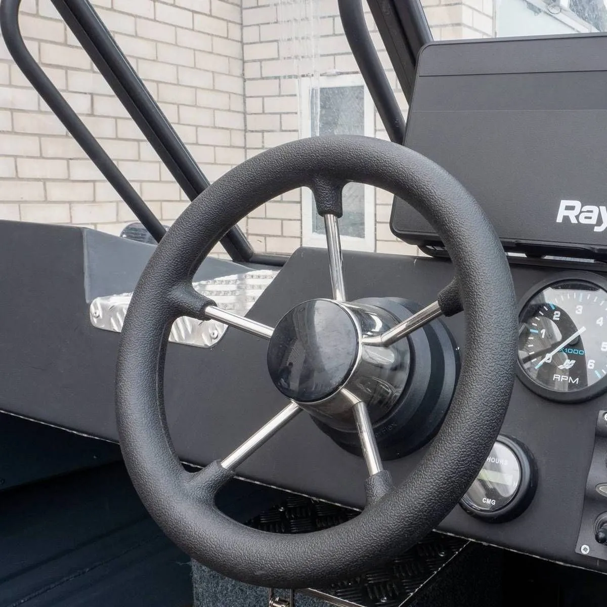 Рулевое колесо нержавейка пять спиц 340 мм (черное)