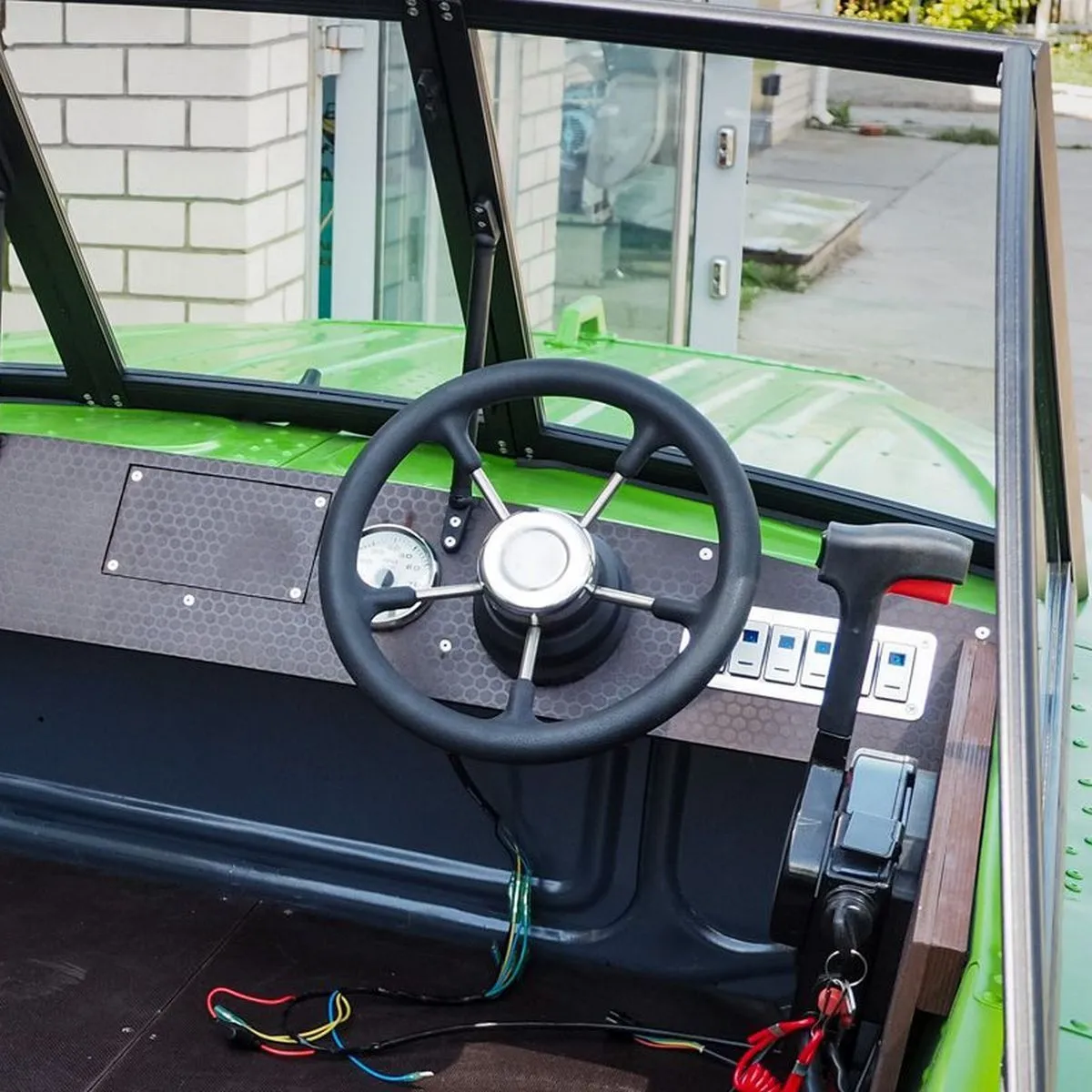 Рулевое колесо нержавейка пять спиц 350 мм (черное)