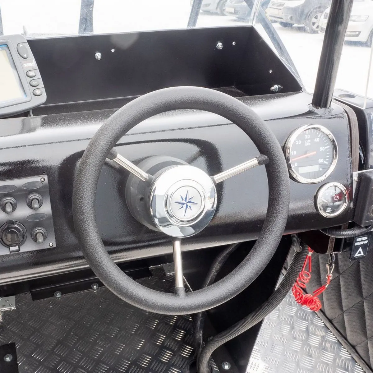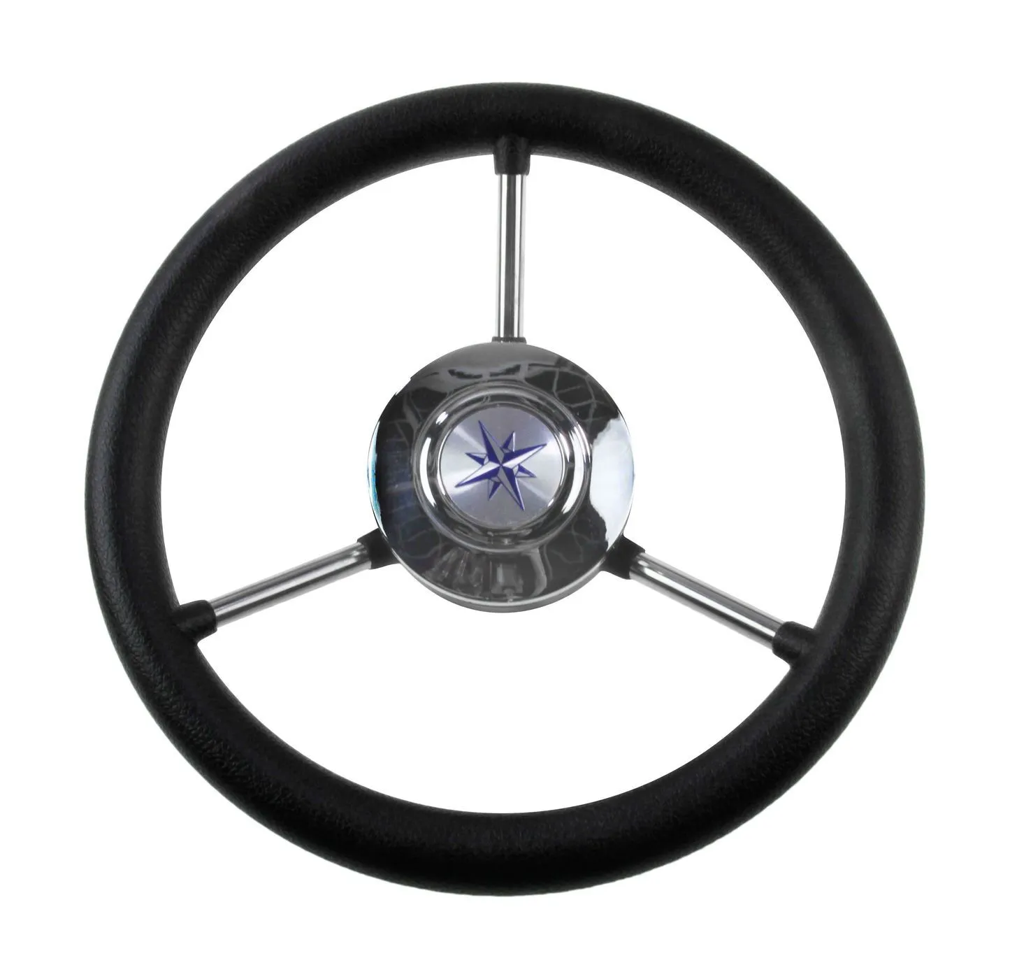 Рулевое колесо нержавейка три спицы 280 мм (черное)