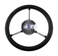 Рулевое колесо. Имеет нержавеющий каркас с тремя спицами, оплетку из черного термопластика.