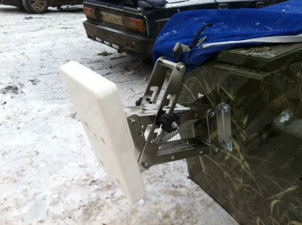 Транец предусматривает четыре положения регулировки по высоте установки, снабжен пружиной, облегчающей подъем мотора.