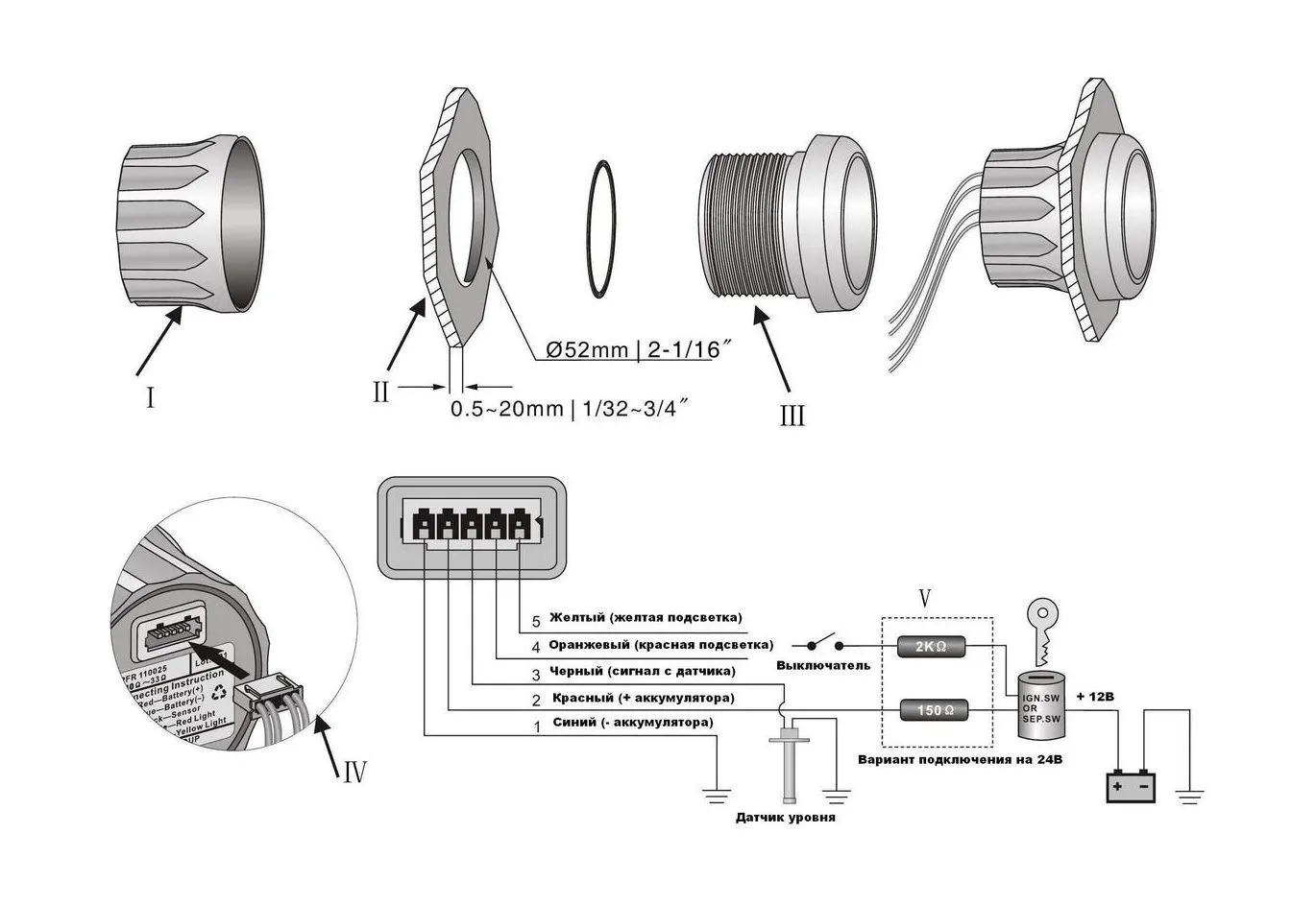 Предназначен для контроля уровня топлива, совместим с датчиками уровня европейского стандарта. Для питания прибора используется бортовая сеть постоянного тока напряжением 12 Вольт. Прибор имеет влагозащитное исполнение, подсветку шкалы, поставляется с комплектом крепления на приборной панели. Посадочный диаметр прибора 52 мм.