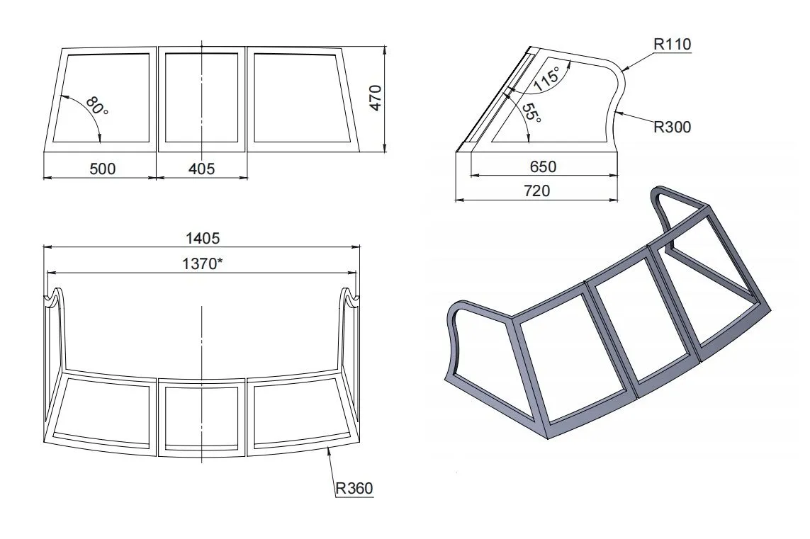 Ветровое стекло Премиум Фиш 1405x720x470