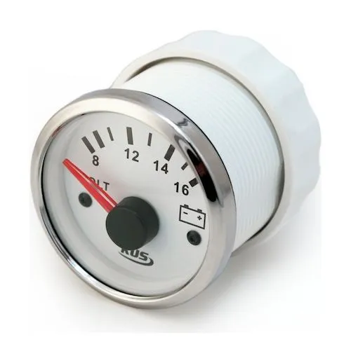 Вольтметр 8-16 Вольт (KUS), белый+нержавейка