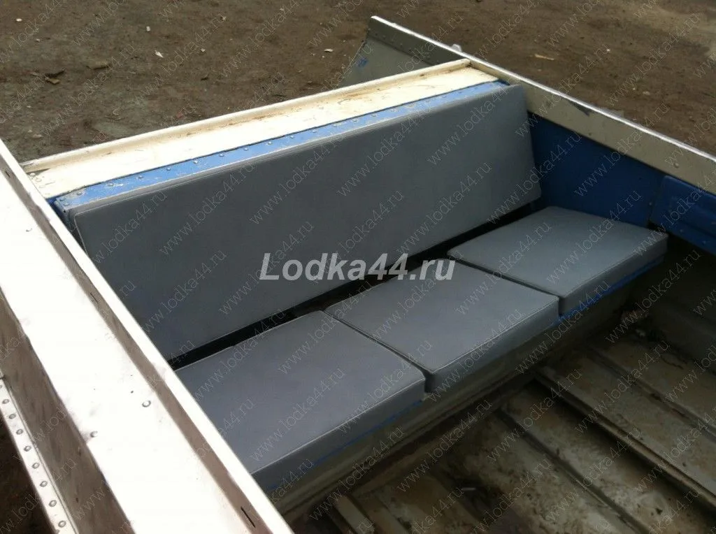 Мягкие накладки задних сидений для лодок "Казанка-5м, 5м2, 5м3, 5м4". Основание из влагостойкой фанеры, поролон повышенной плотности, водонепроницаемый материал. Накладки крепятся к существующему каркасу с помощью саморезов. Элемент основания на 5 см консольно свисает относительно каркаса рундука.