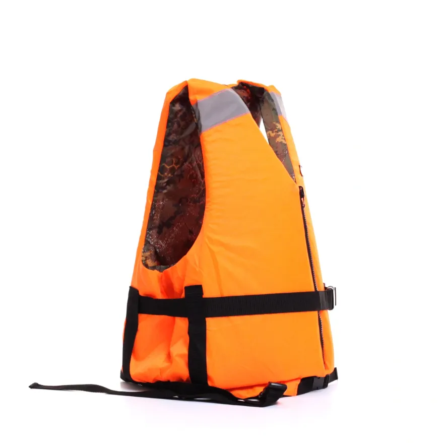 Спасательный жилет, двухторонний: оранжевого сигнального цвета/камуфляжный. Идеально подойдет как для рыбаков, так и других любителей отдыха на воде. Данная модель пользуется большой популярностью у различных групп туристов, чей отдых связан с пребыванием на озерах, реках и морях.