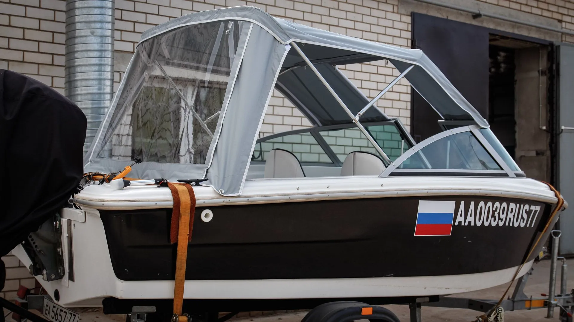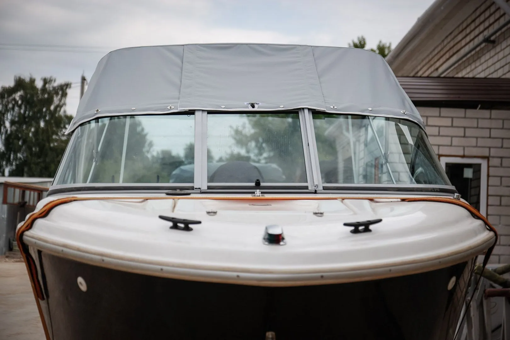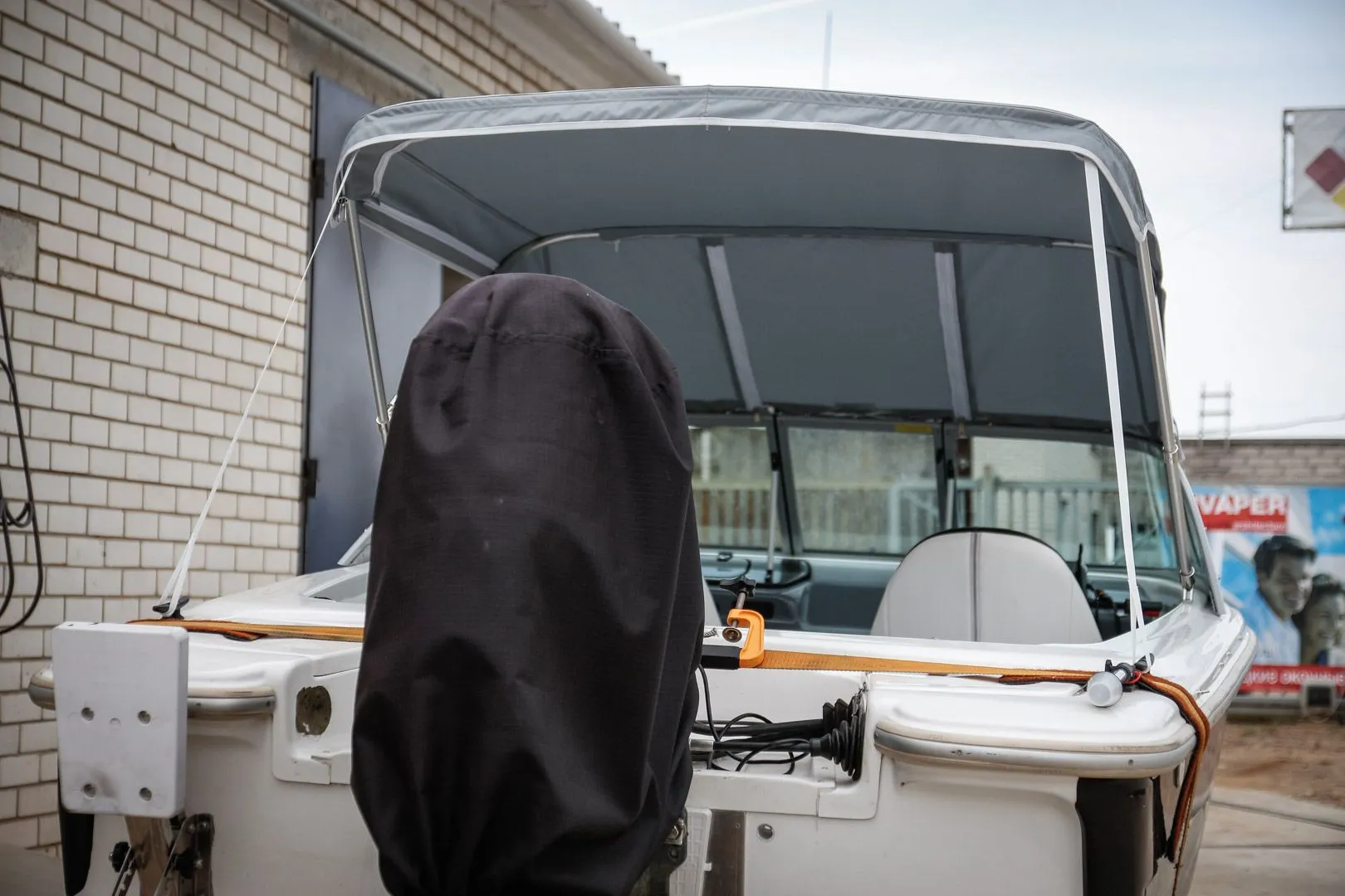 Тент ходовой в базовой комплектации оснащён двумя молниями для выхода к мотору, двумя молниями для поднятия боковин при натянутой крыше и комплектом крепежа в виде кнехт.
