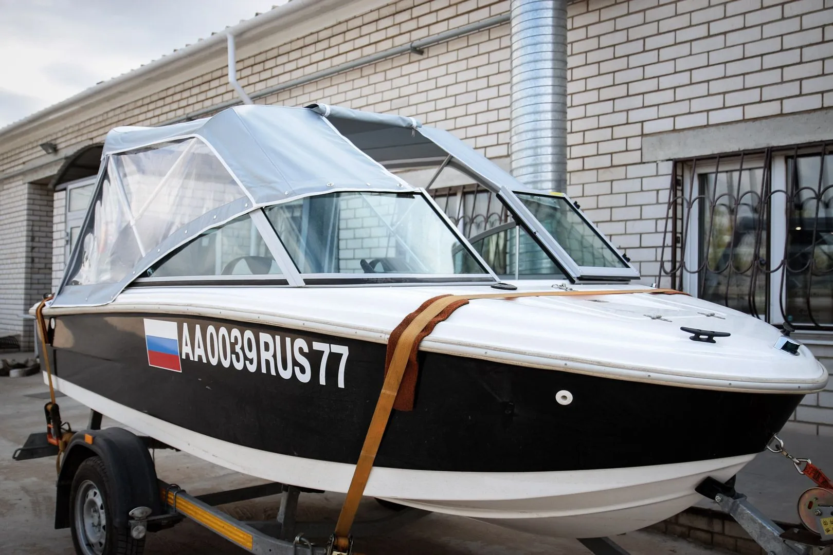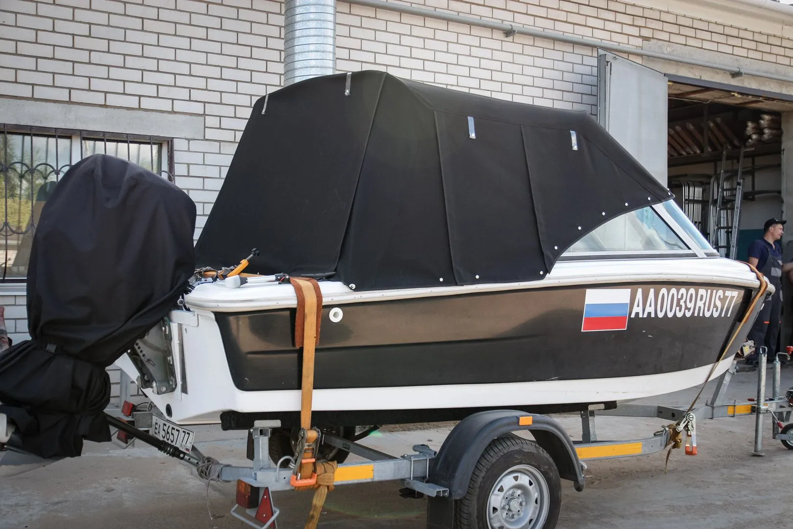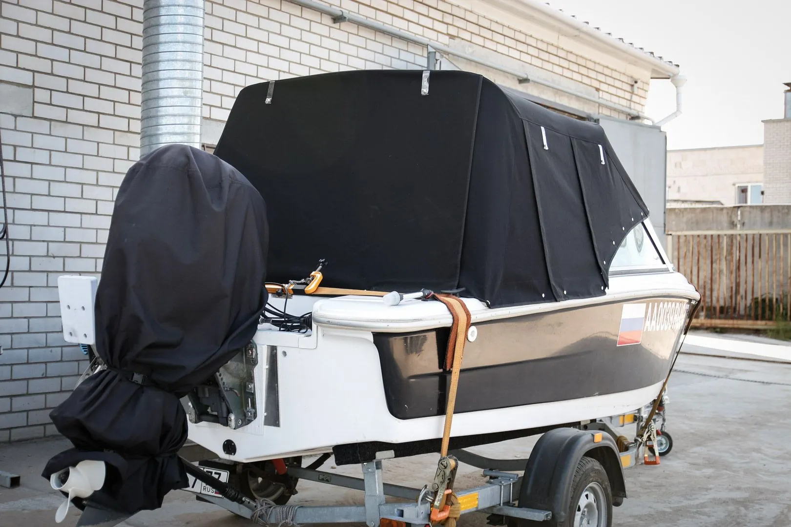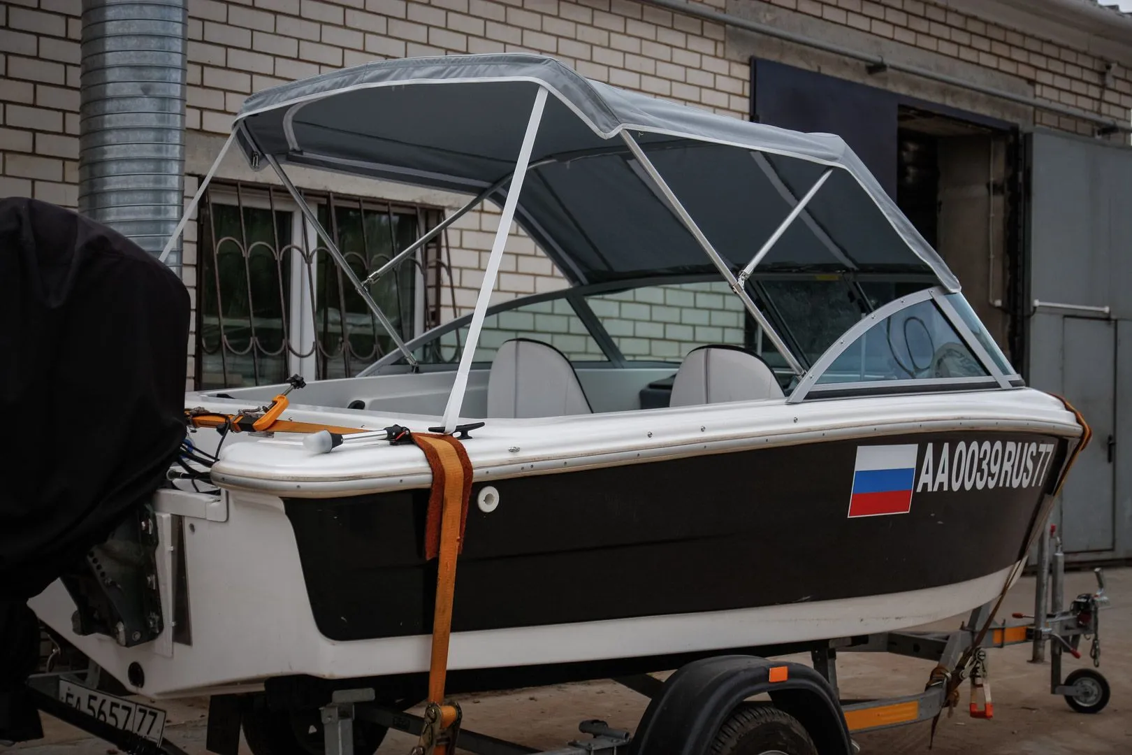 Тент ходовой в базовой комплектации оснащён двумя молниями для выхода к мотору, двумя молниями для поднятия боковин при натянутой крыше и комплектом крепежа в виде кнехт.