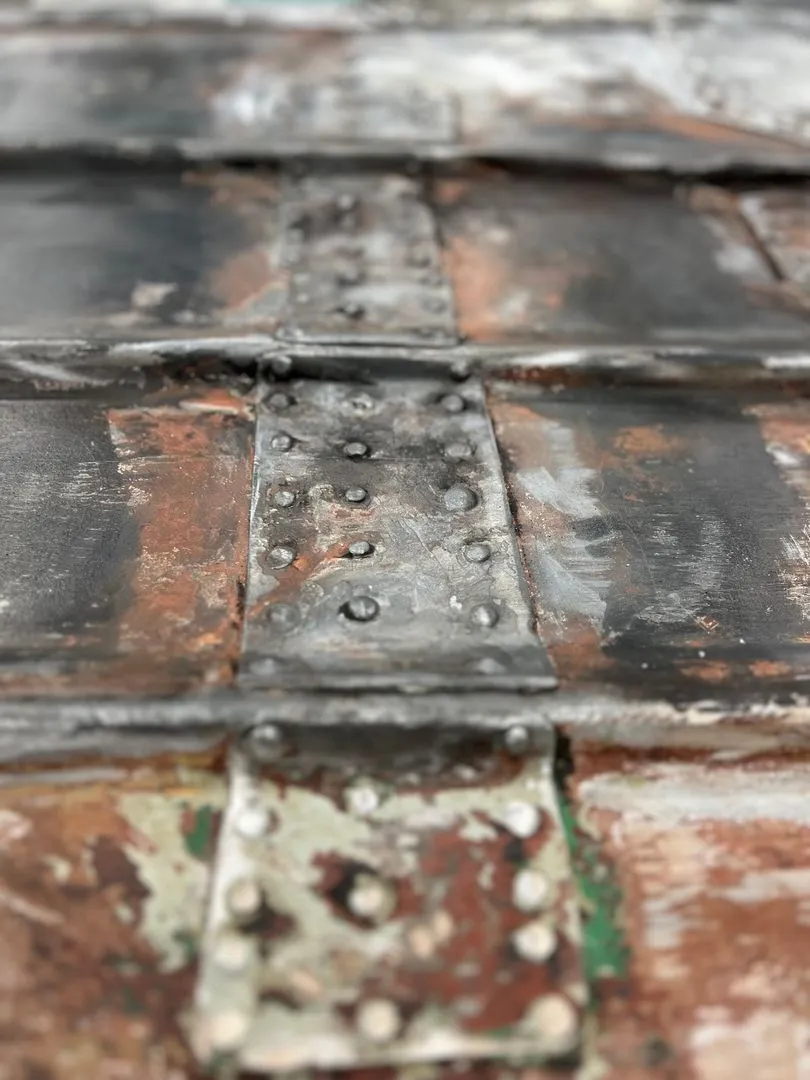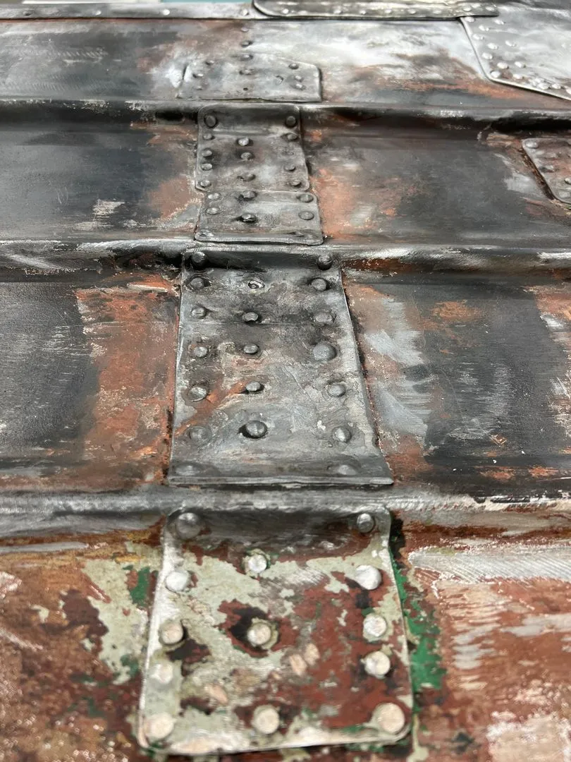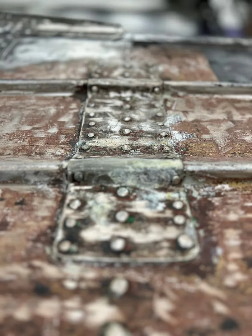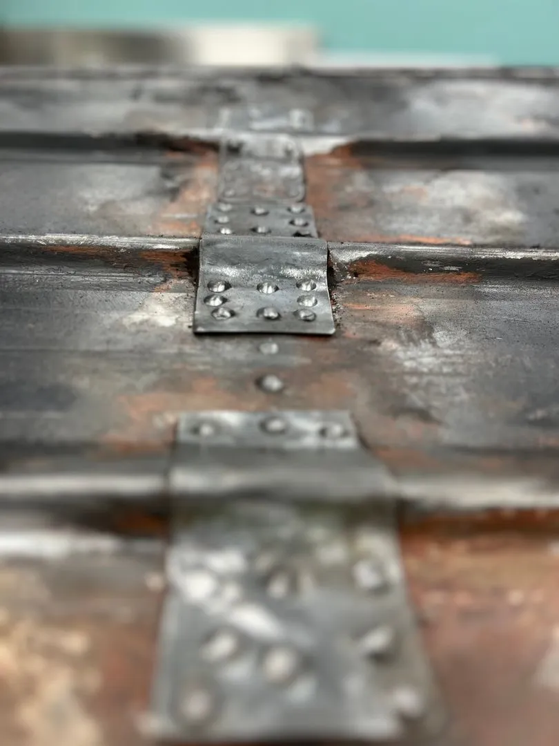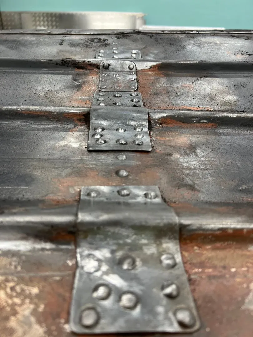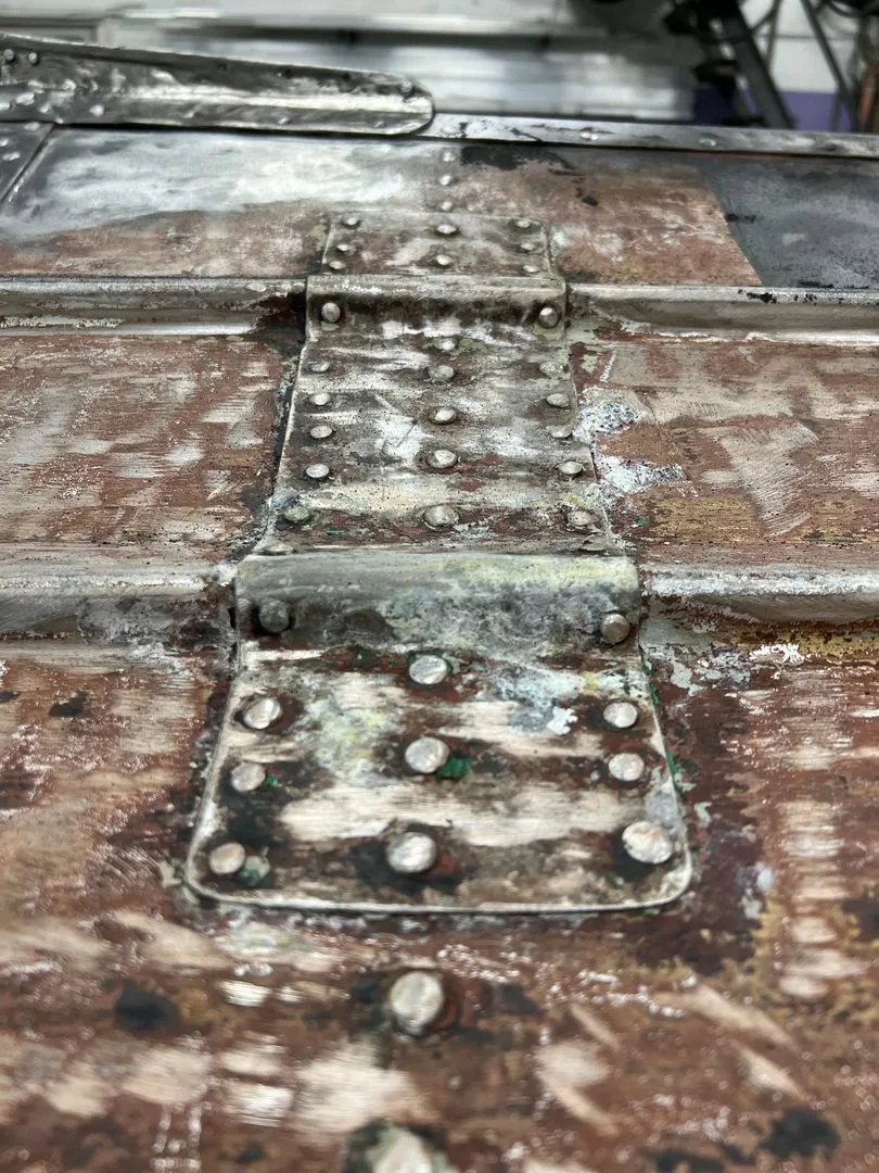 Закончив работу с транцем, мы перешли к ремонтным вмешательствам на днище лодки. В процессе заменив несколько заплаток на новые, удалив болты, повреждённые заклёпки и заменив накладки обводов которые особенно сильно пострадали от коррозии.