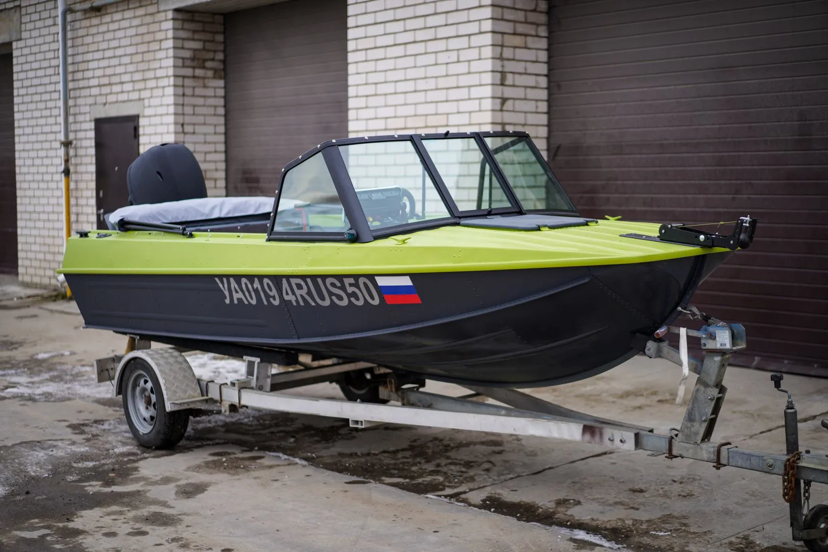 (2023) Казанка 5М4 Ветровое стекло Auto с боковиной Классик, покраска в серый и зеленый