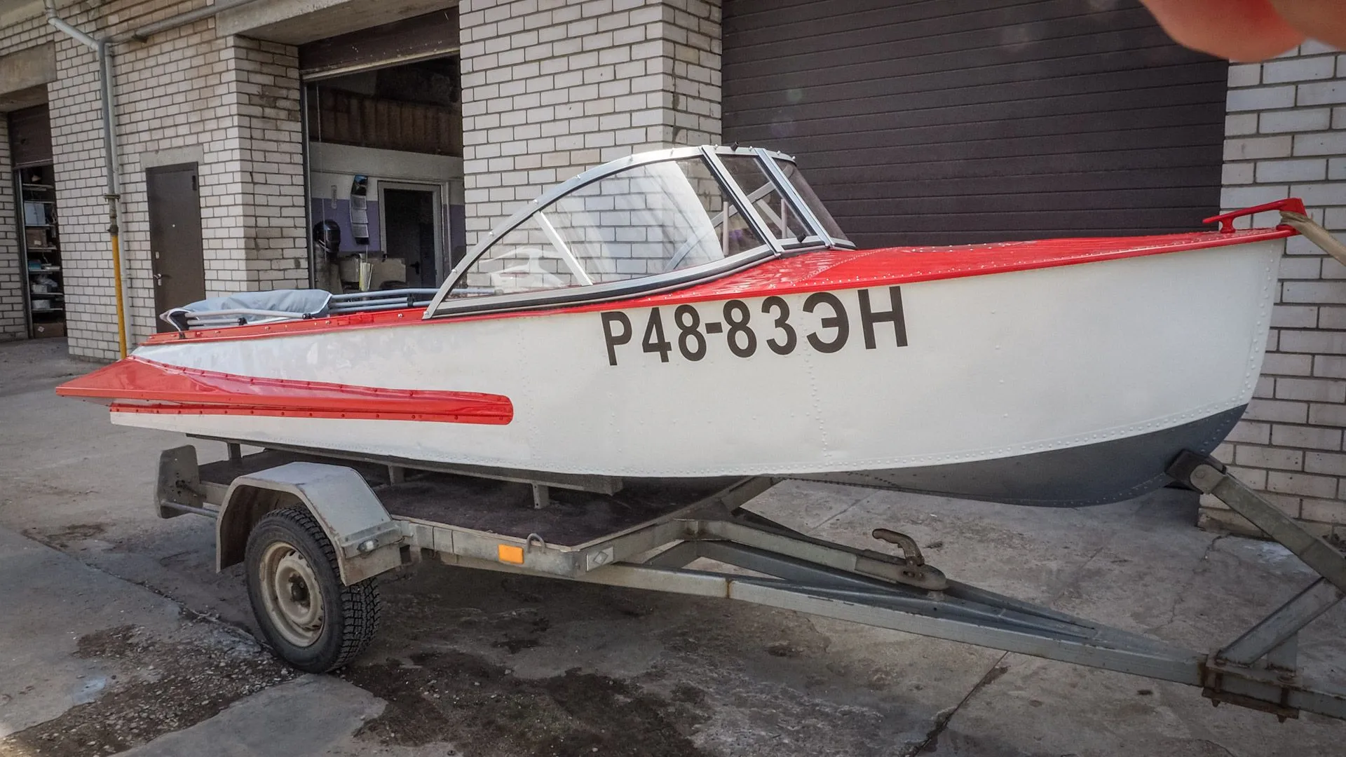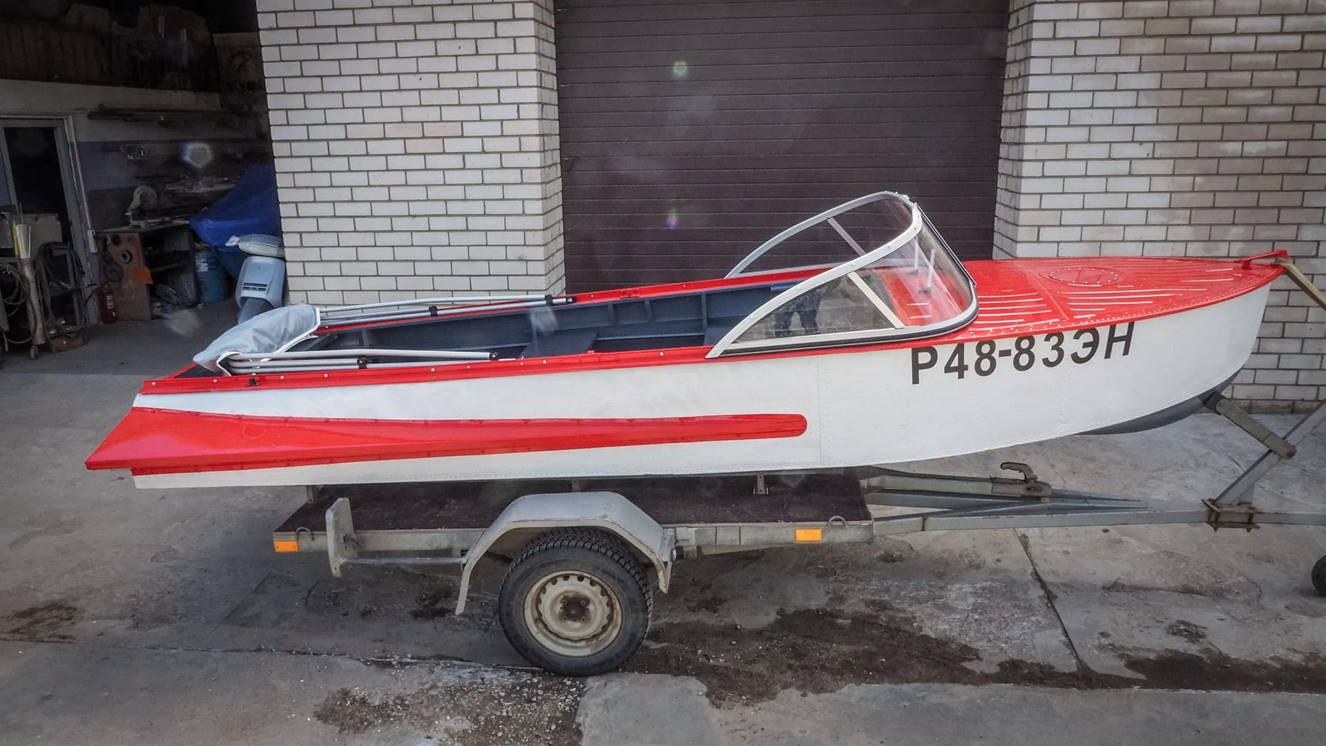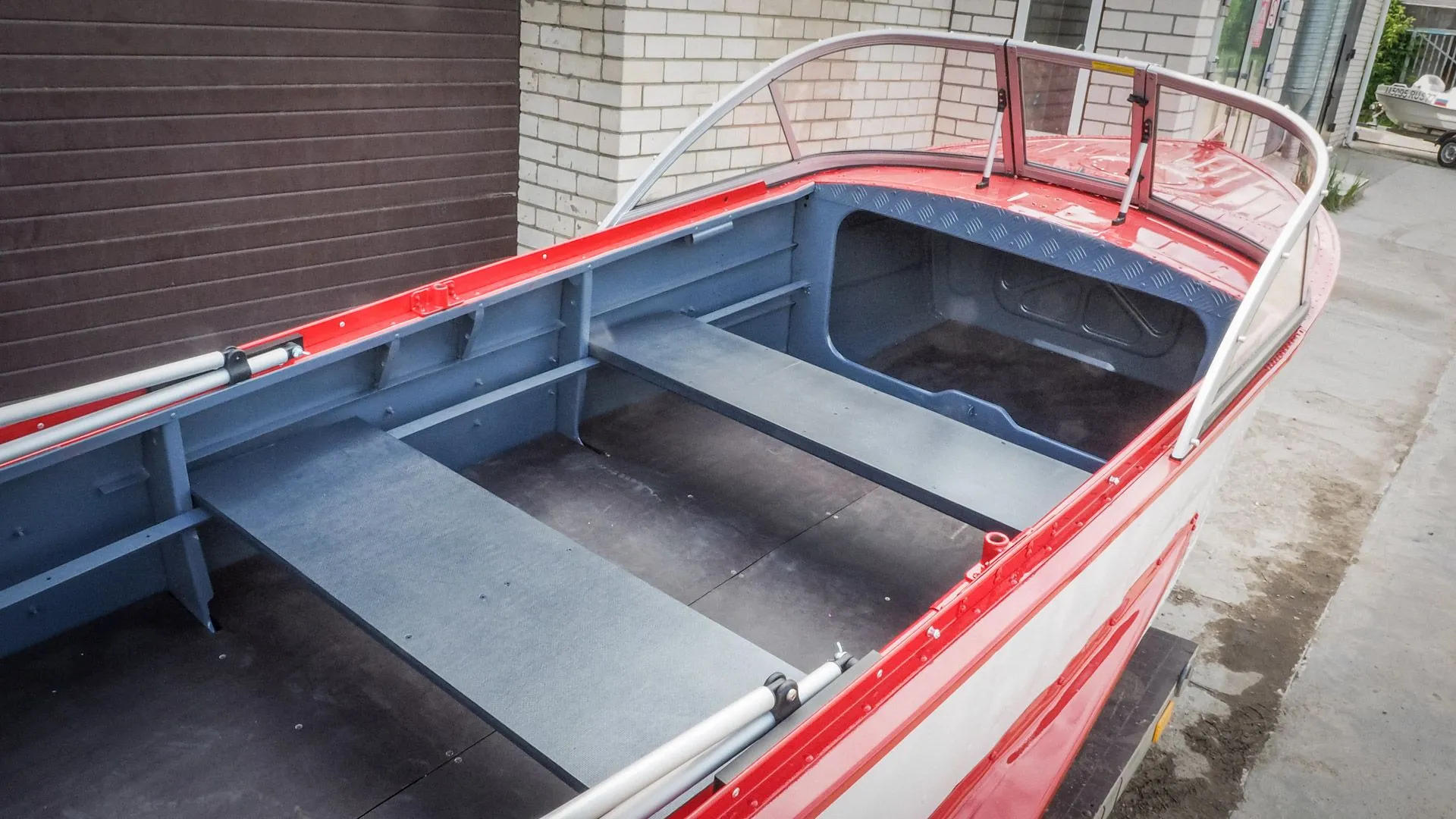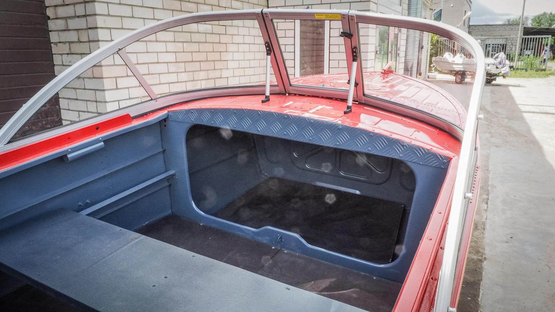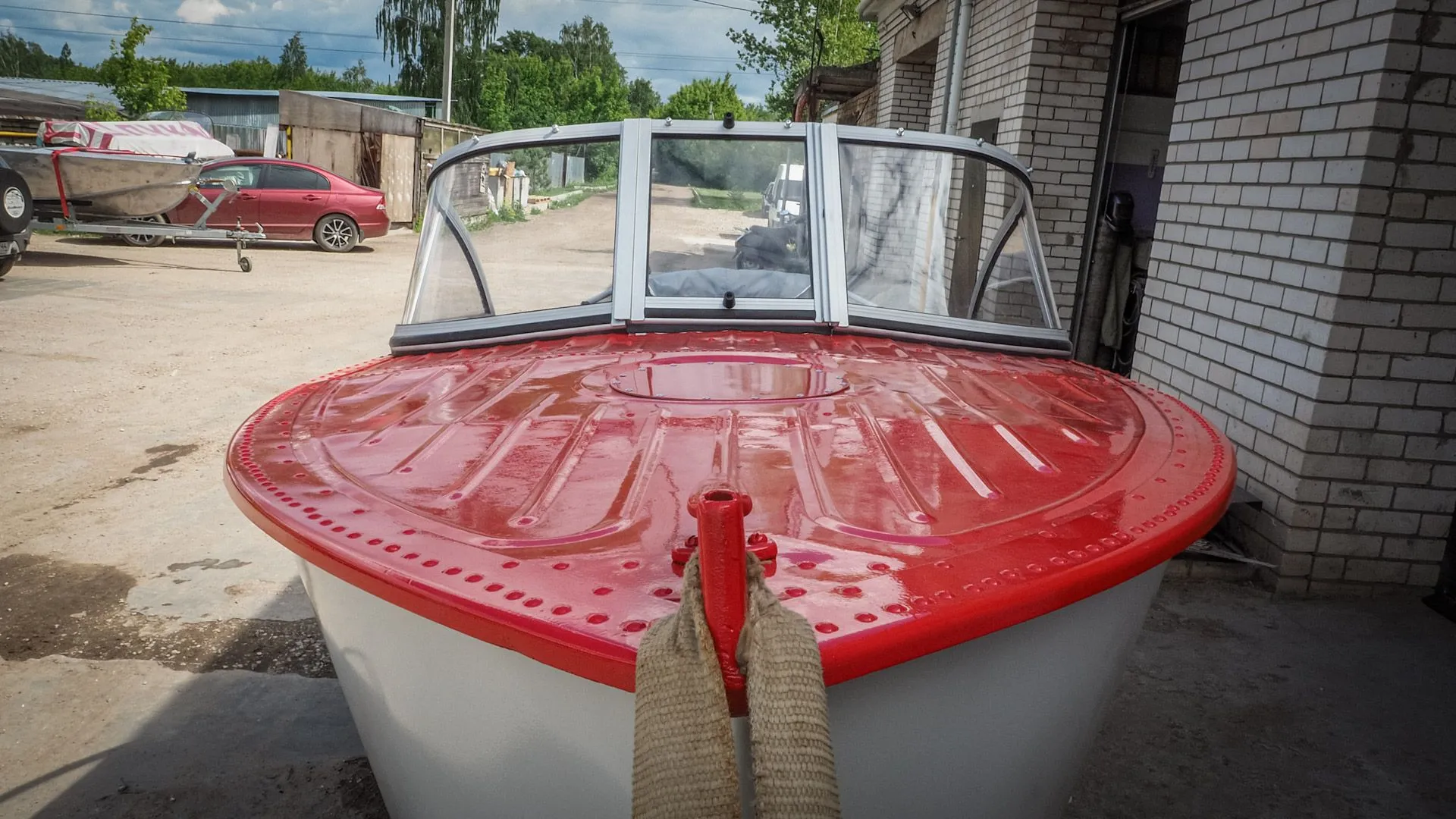 (2022) Казанка М Ветровое стекло Элит с боковиной Классик, покраска в бело-красный