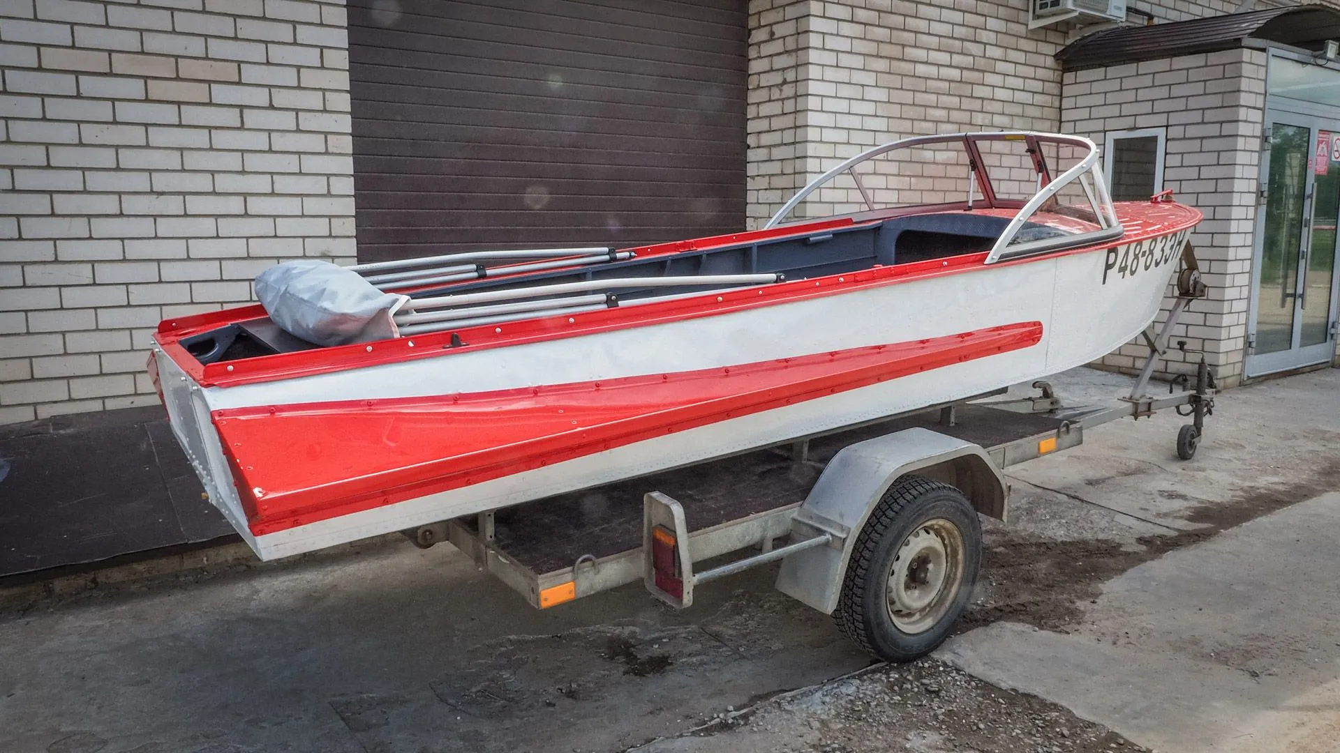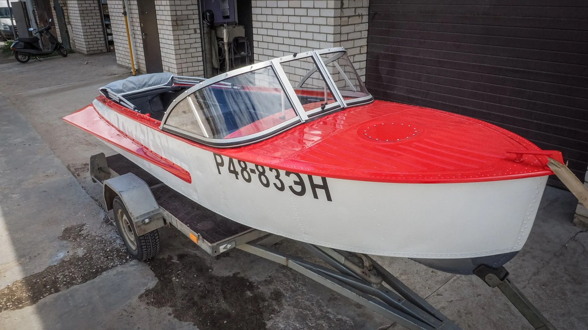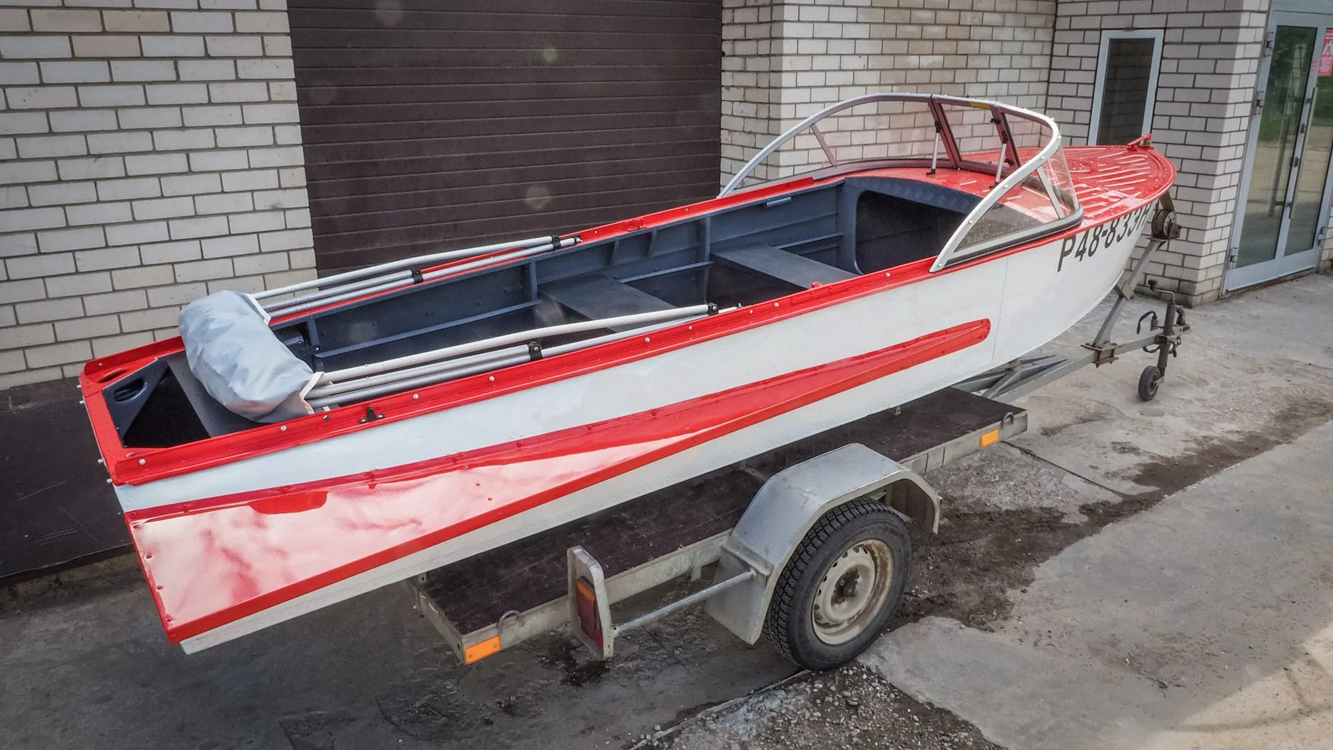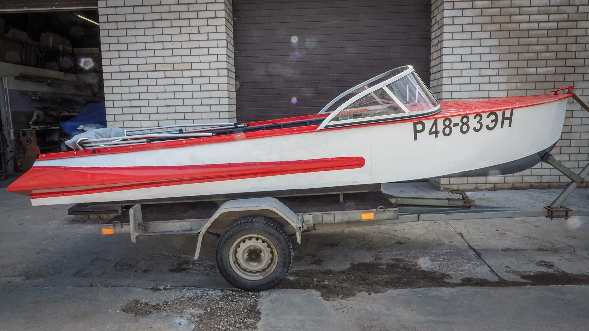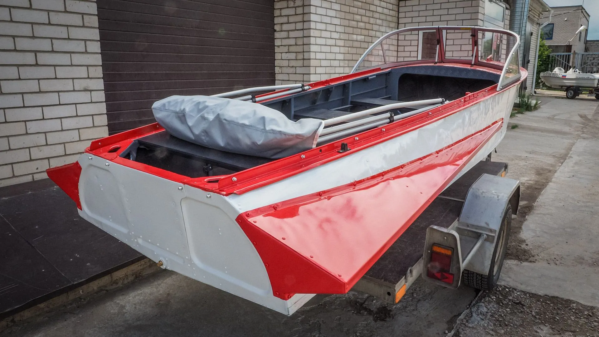 (2022) Казанка М Ветровое стекло Элит с боковиной Классик, покраска в бело-красный