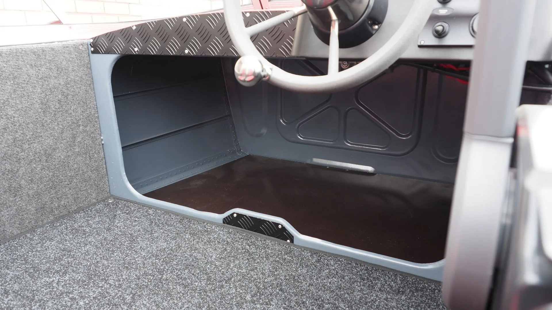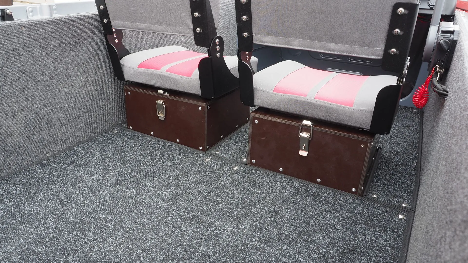 На пайоле лодки были размещены быстросъемные коврики на резиновой основе. Данные коврики фиксирующиеся с помощью кнопок из нержавеющей стали от фирмы DOT, что позволяет получить надёжную фиксацию и не волноваться, что кнопки быстро придут в негодность.