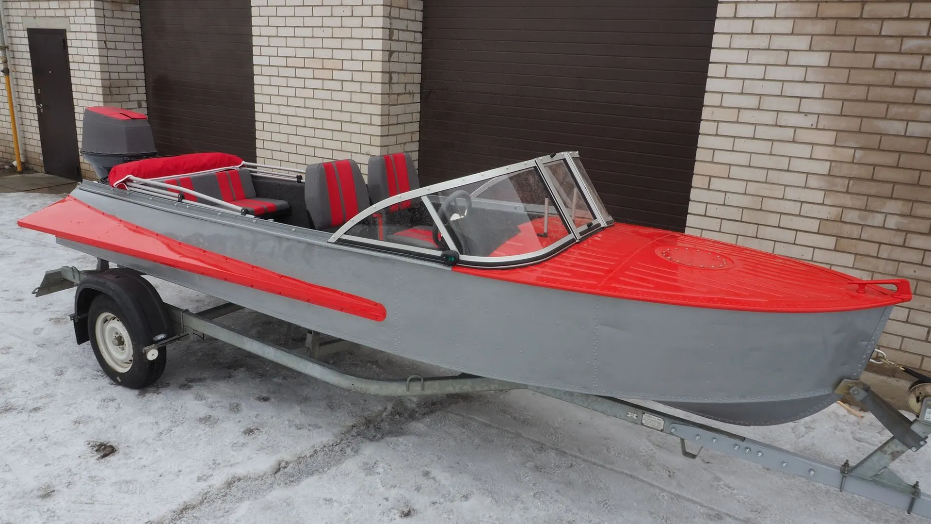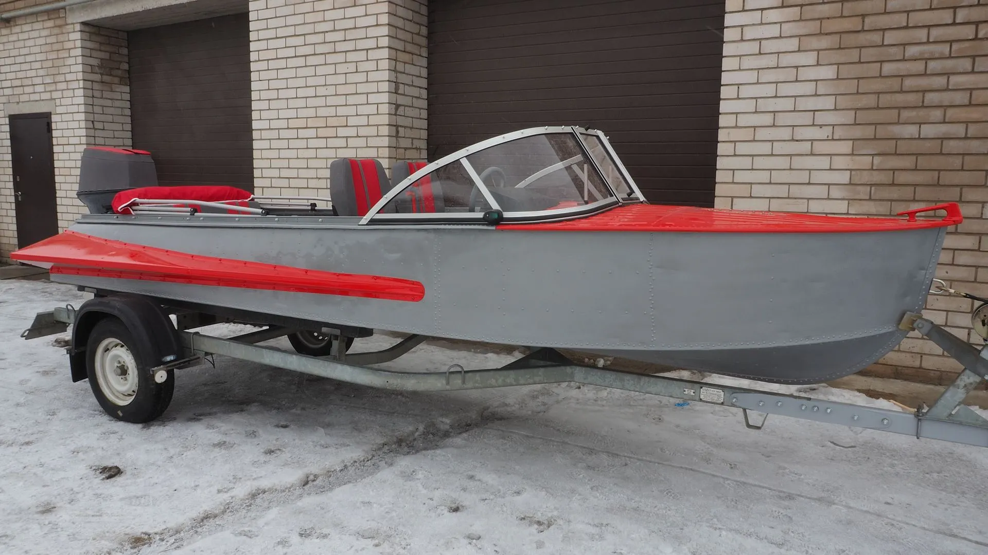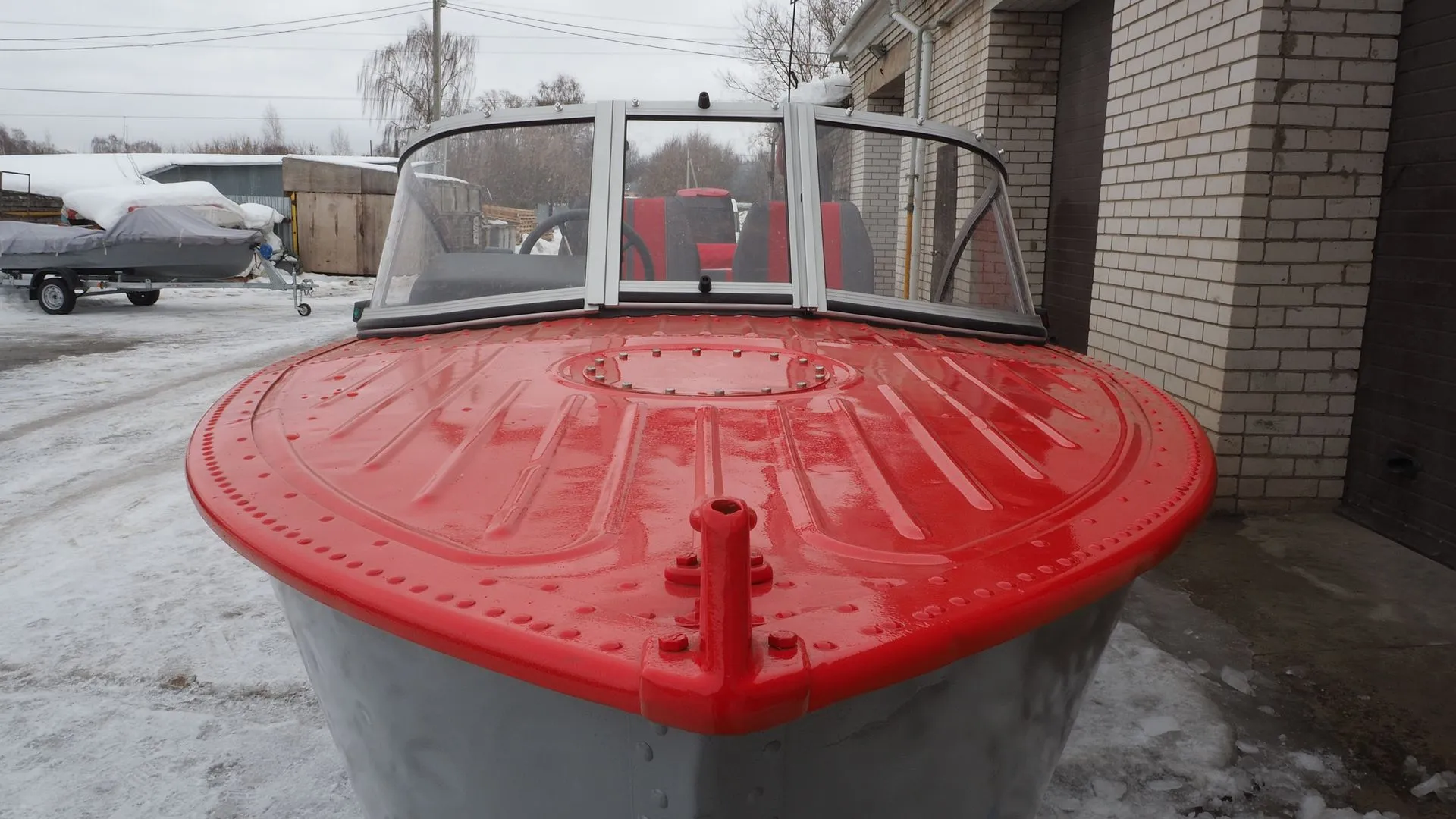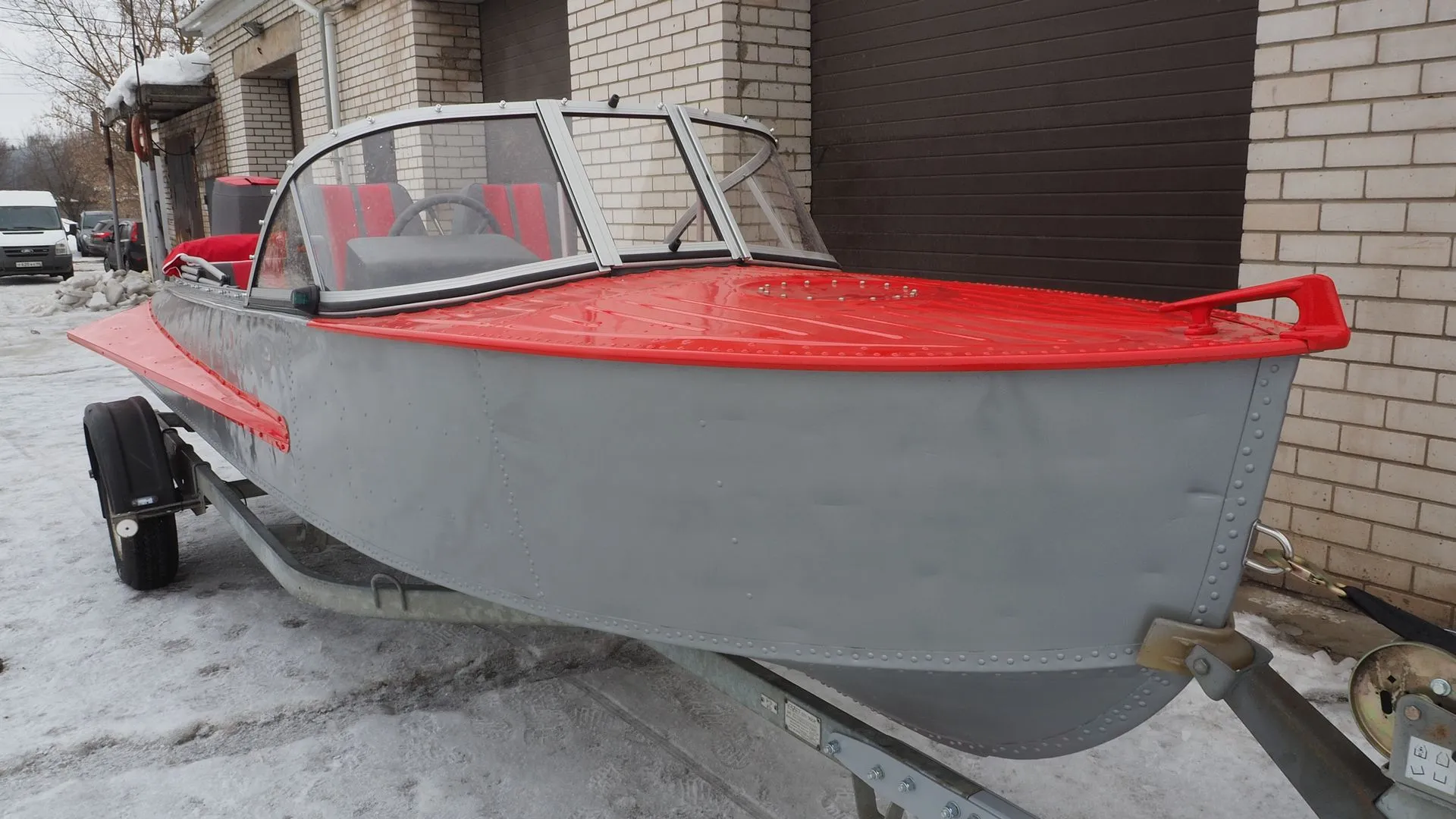 (2022) Казанка М Ветровое стекло Элит с боковиной Классик, тент СТояночный, покраска в серо-красный