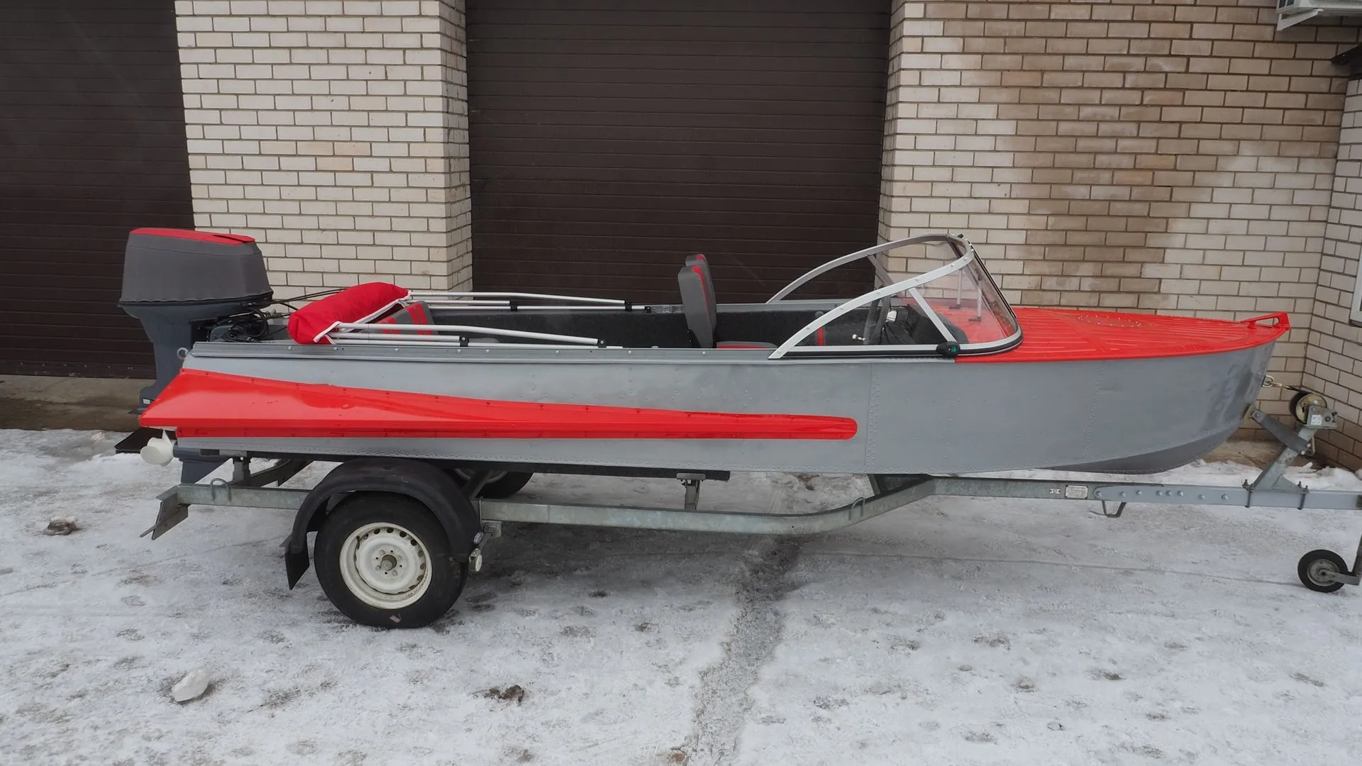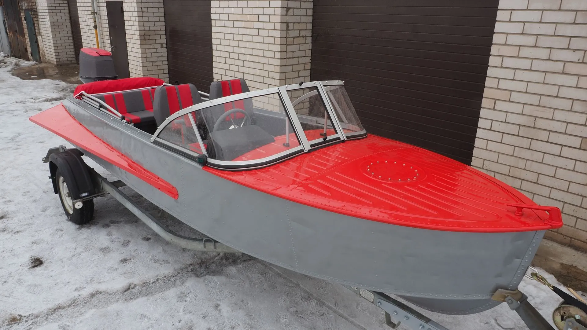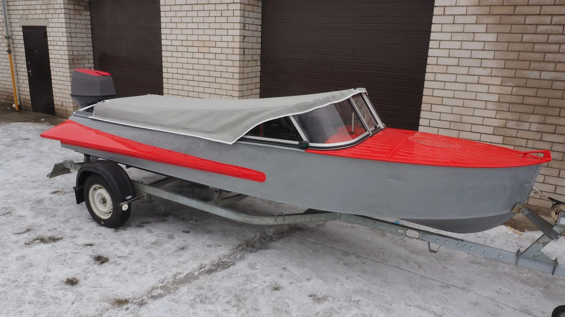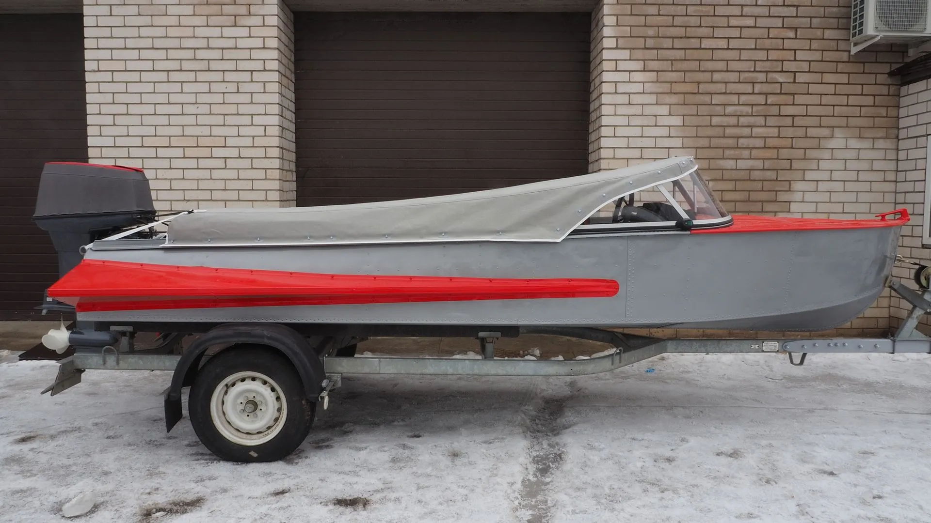 (2022) Казанка М Ветровое стекло Элит с боковиной Классик, тент СТояночный, покраска в серо-красный