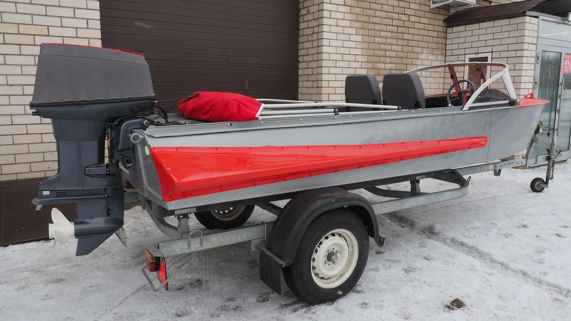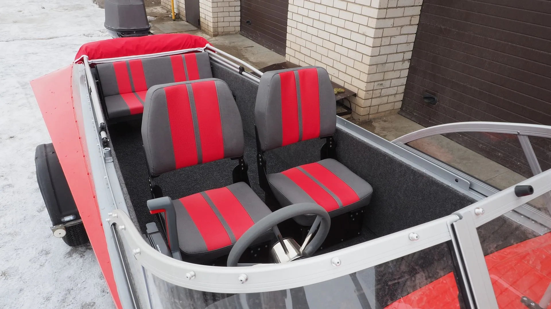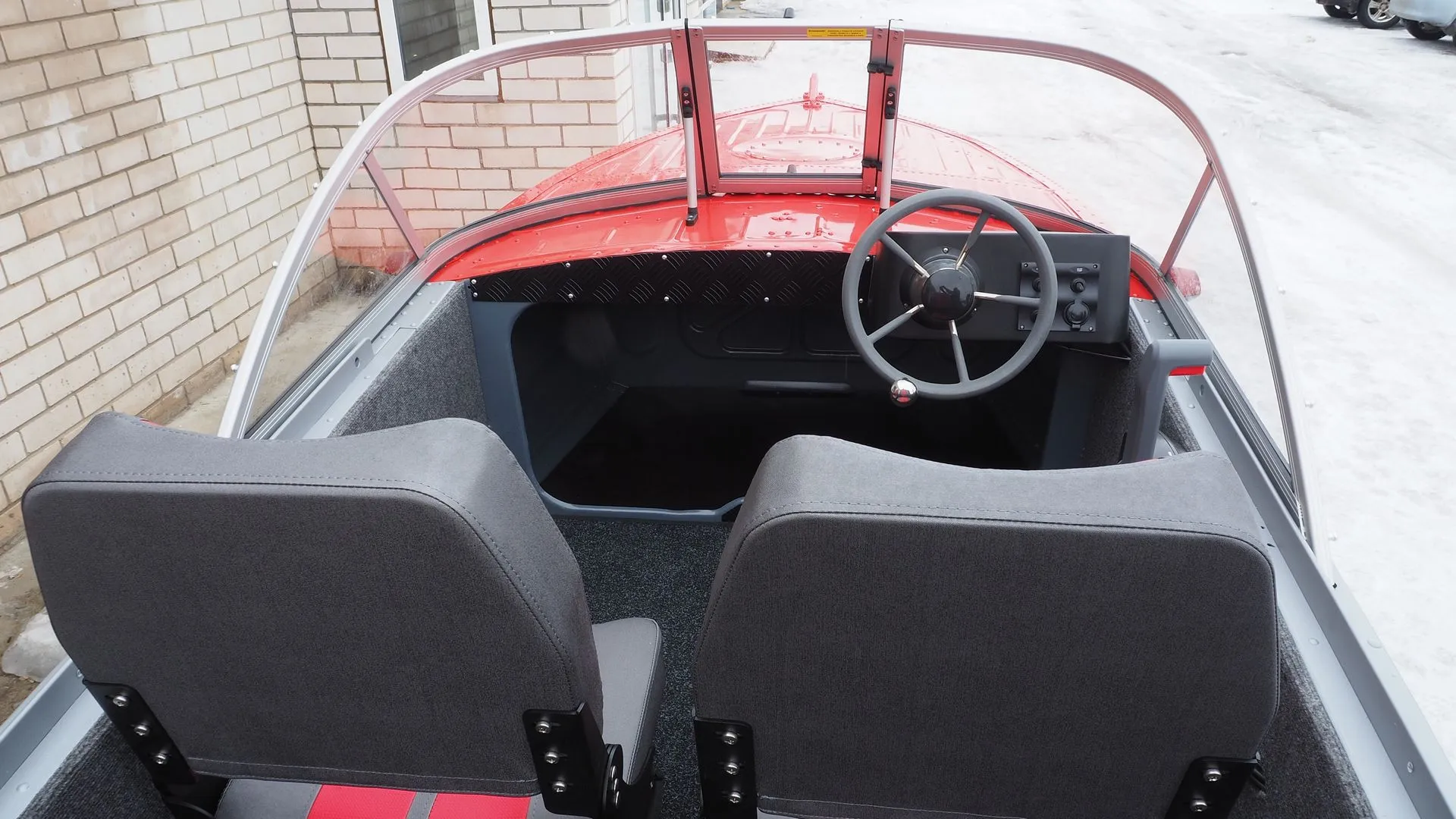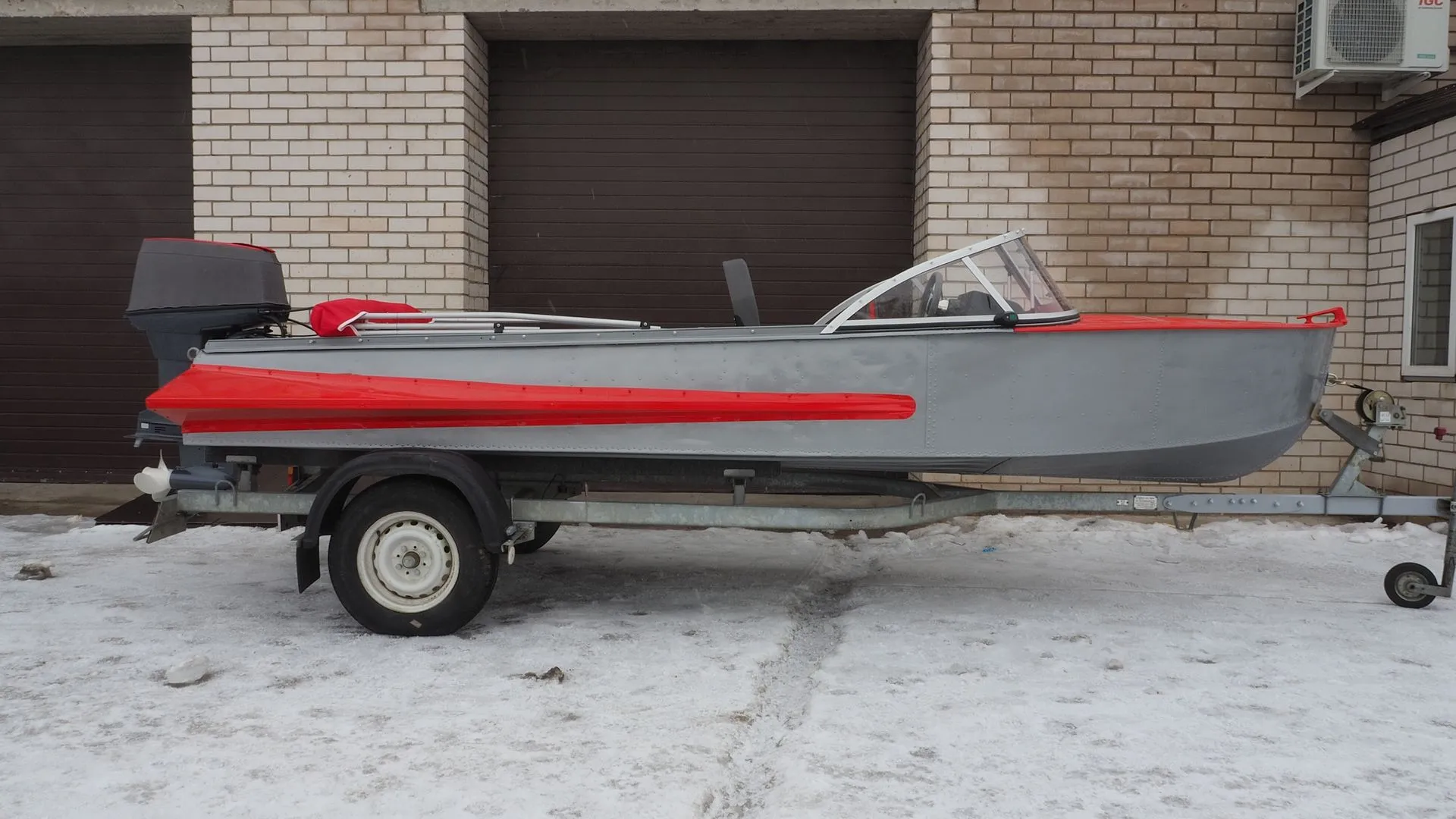 (2022) Казанка М Ветровое стекло Элит с боковиной Классик, тент СТояночный, покраска в серо-красный