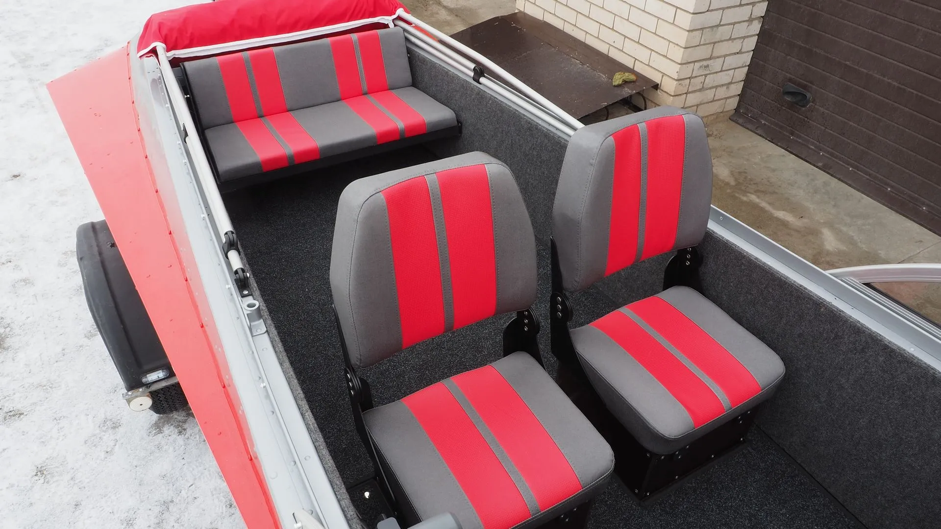 Диван-рундук для данной лодки не является серийной моделью, в связи с чем нам пришлось разработать его конкретно для этой лодки, по аналогии с моделями которые мы производим для лодок Прогресс, Днепр, Обь и других моделей лодок Казанского судостроительного завода.