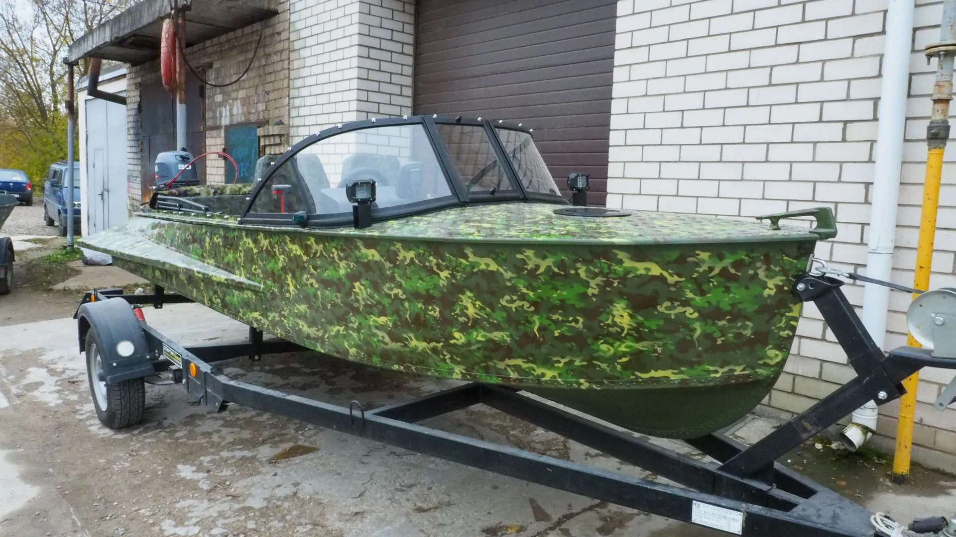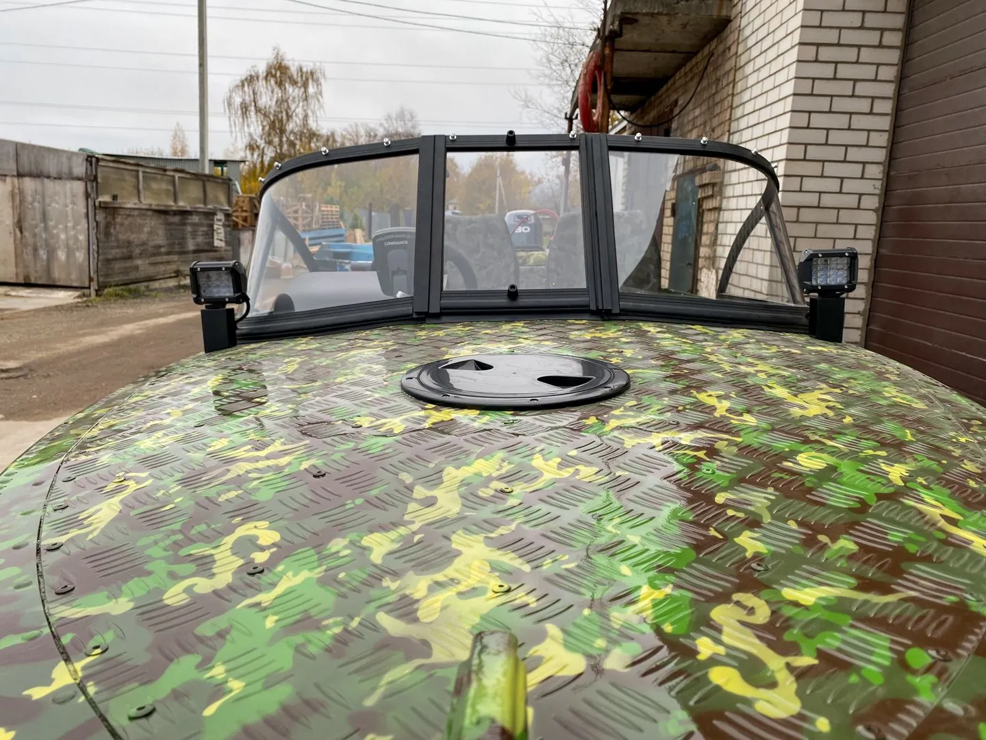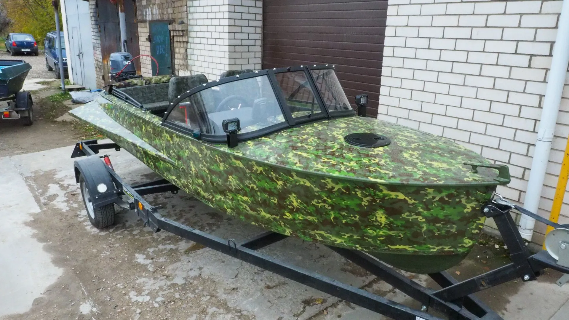 На этапе сборки, на лодку было установлено ветровое стекло «Элит» с окраской профиля в черный мат, удлиненными боковинами и остеклением из акрила.