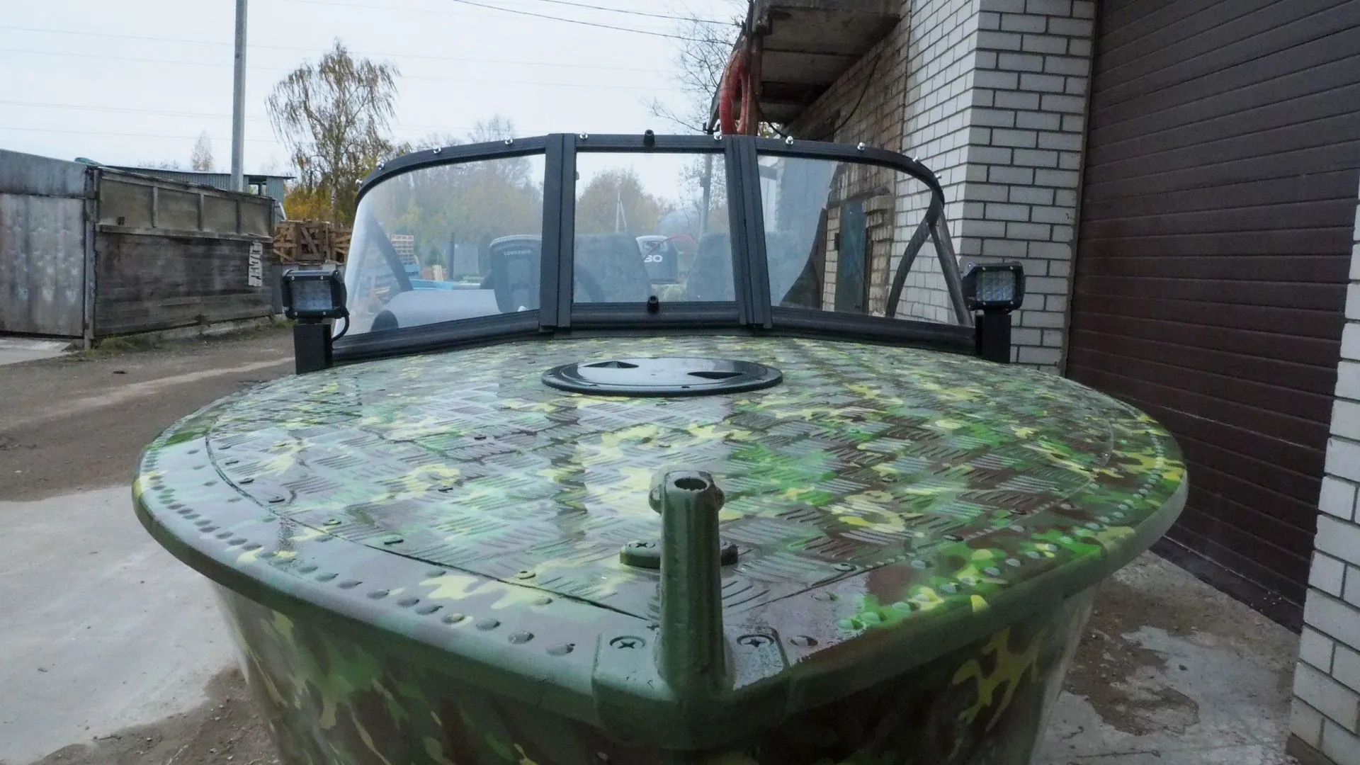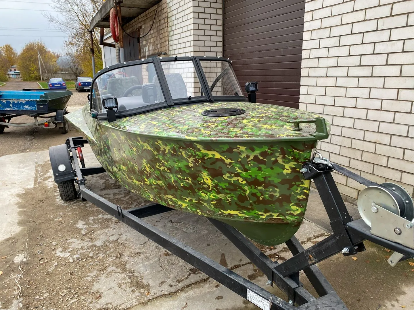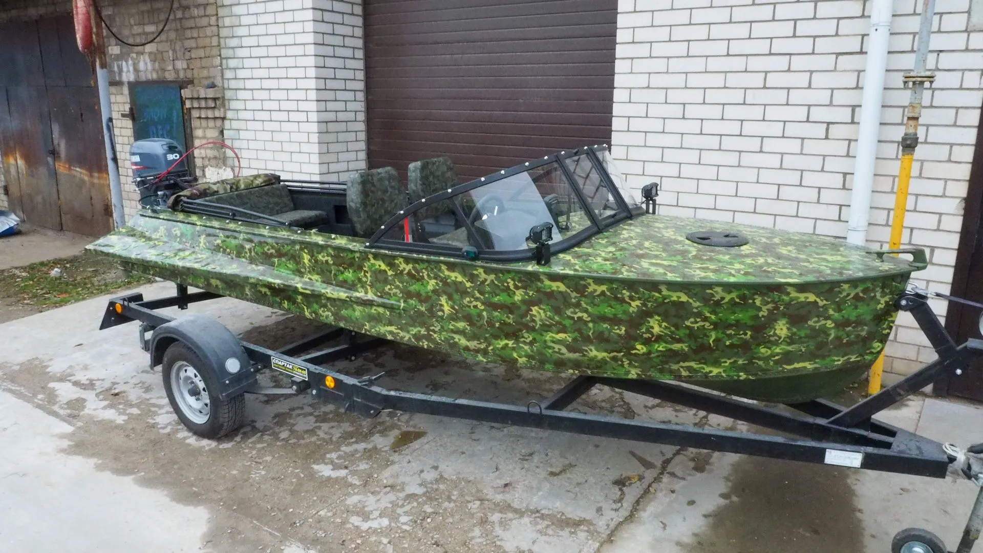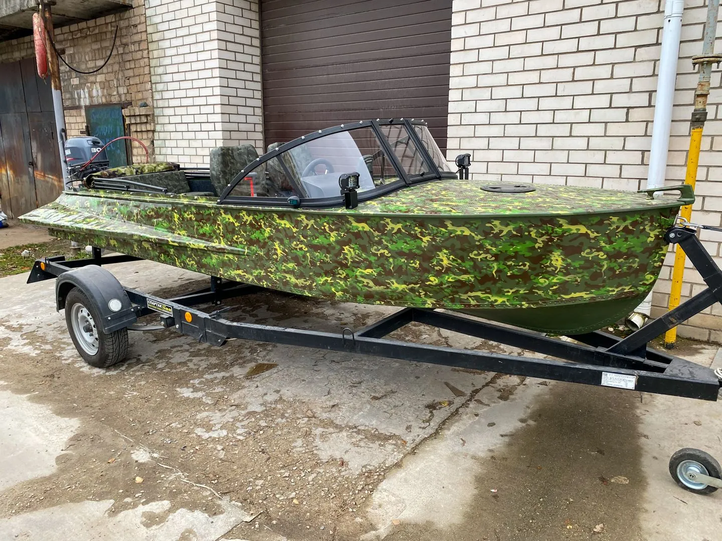 На этапе сборки, на лодку было установлено ветровое стекло «Элит» с окраской профиля в черный мат, удлиненными боковинами и остеклением из акрила.
