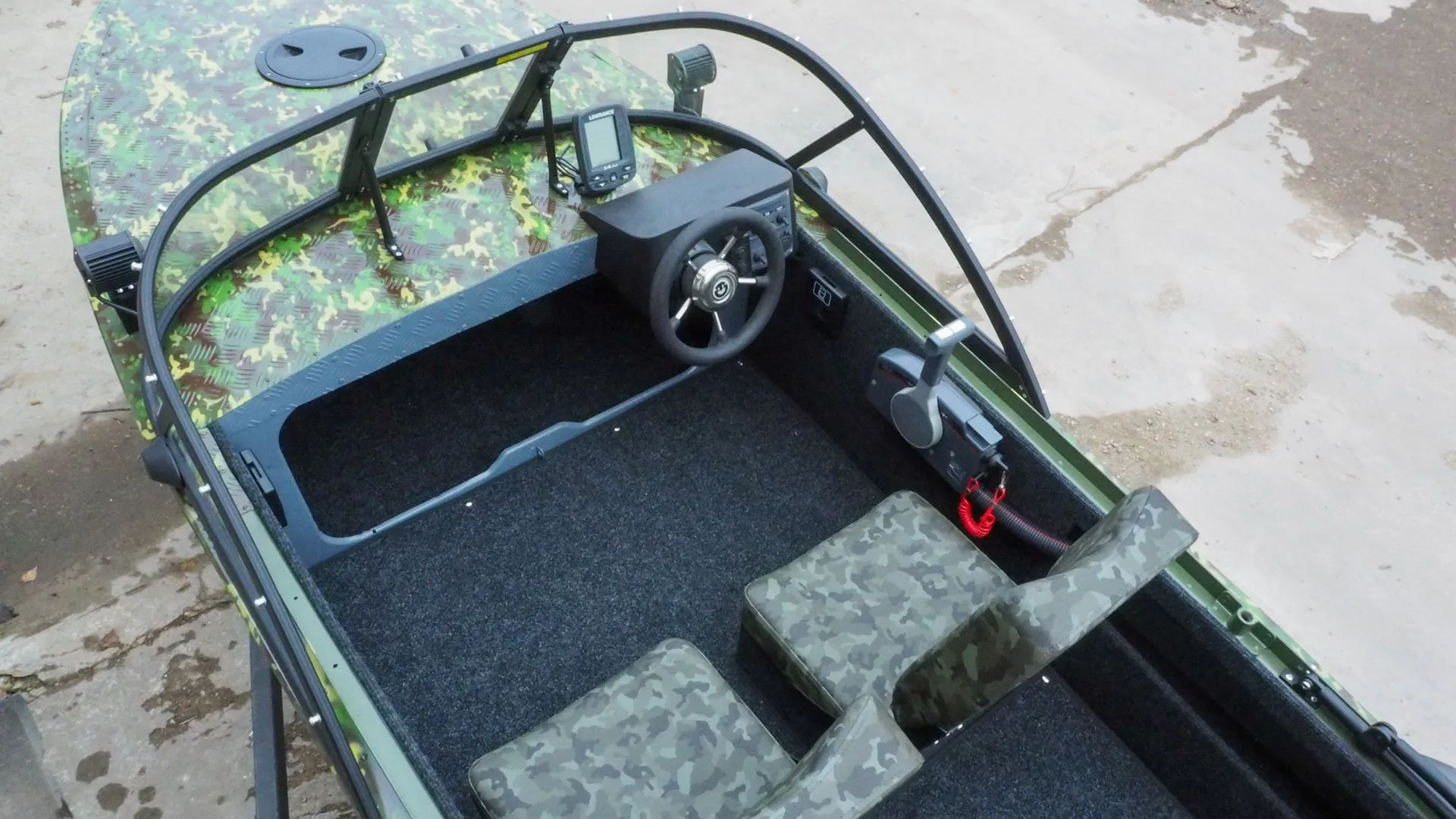 Дополнительно в лодке были размещены быстросъемные коврики из ковролина на резиновой основе и фиксации на нержавеющие кнопки DOT.