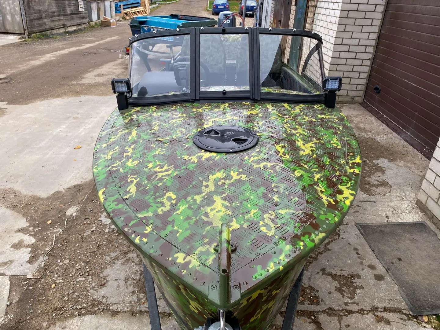 Процесс покраски в данном случае совершенно стандартный. Разве что цвета и рисунок которые применяли для данной лодки, не так часто встречаются в наших работах.