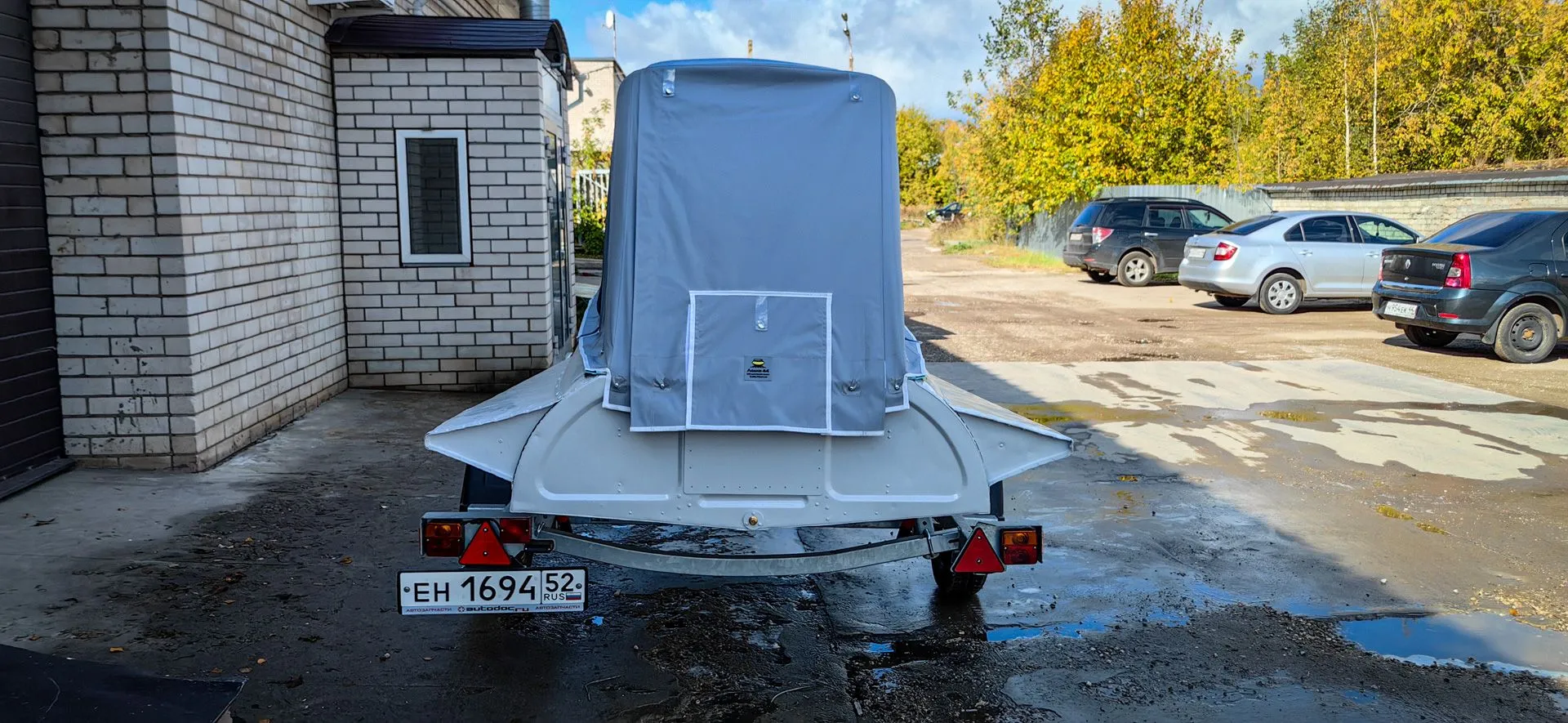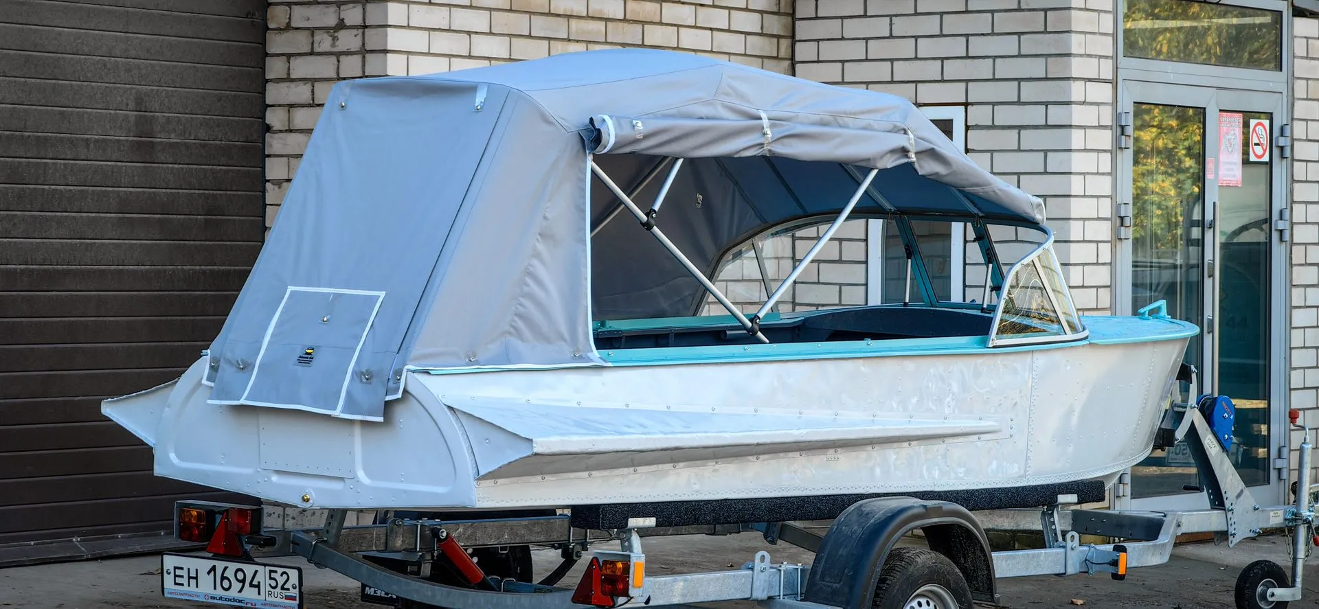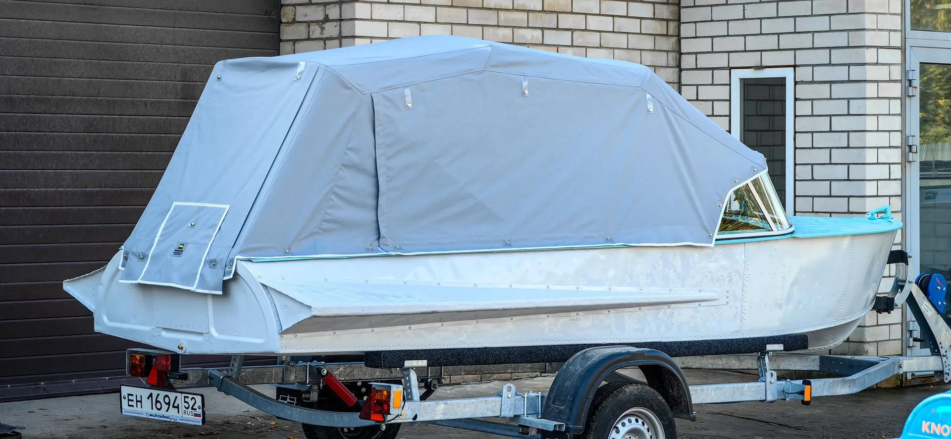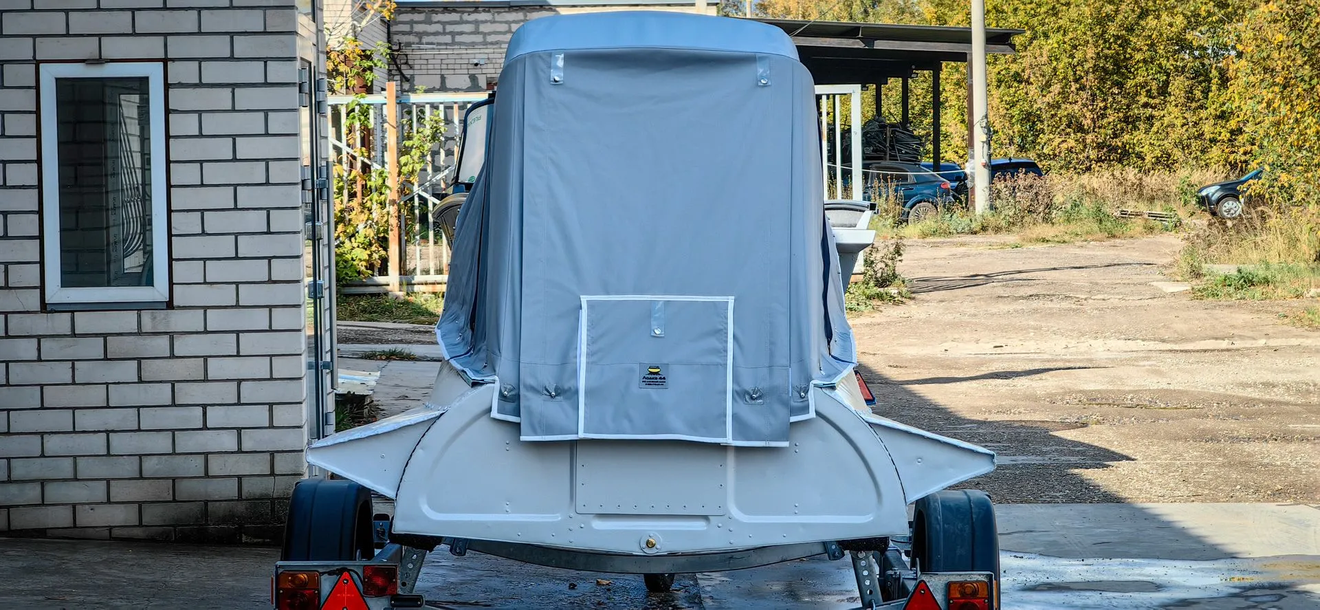 Так же на лодку были установлены тройные алюминиевые дуги и ходовой тент из светло-серой полиэстеровой с креплением на алюминиевые кнехты.