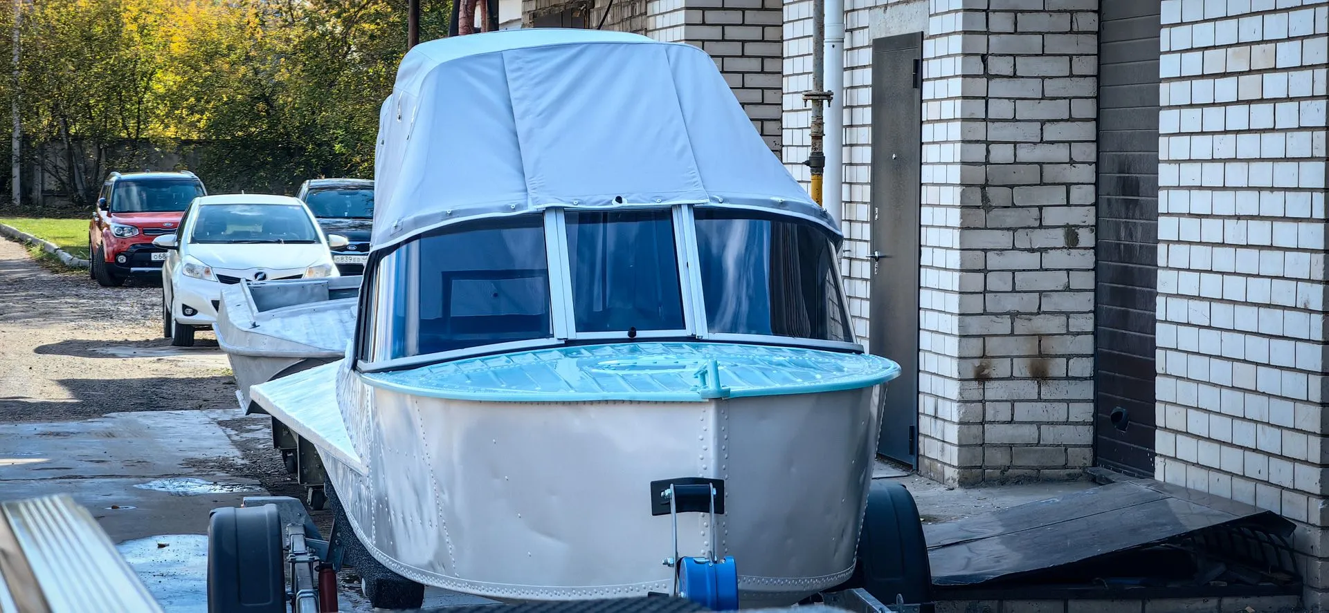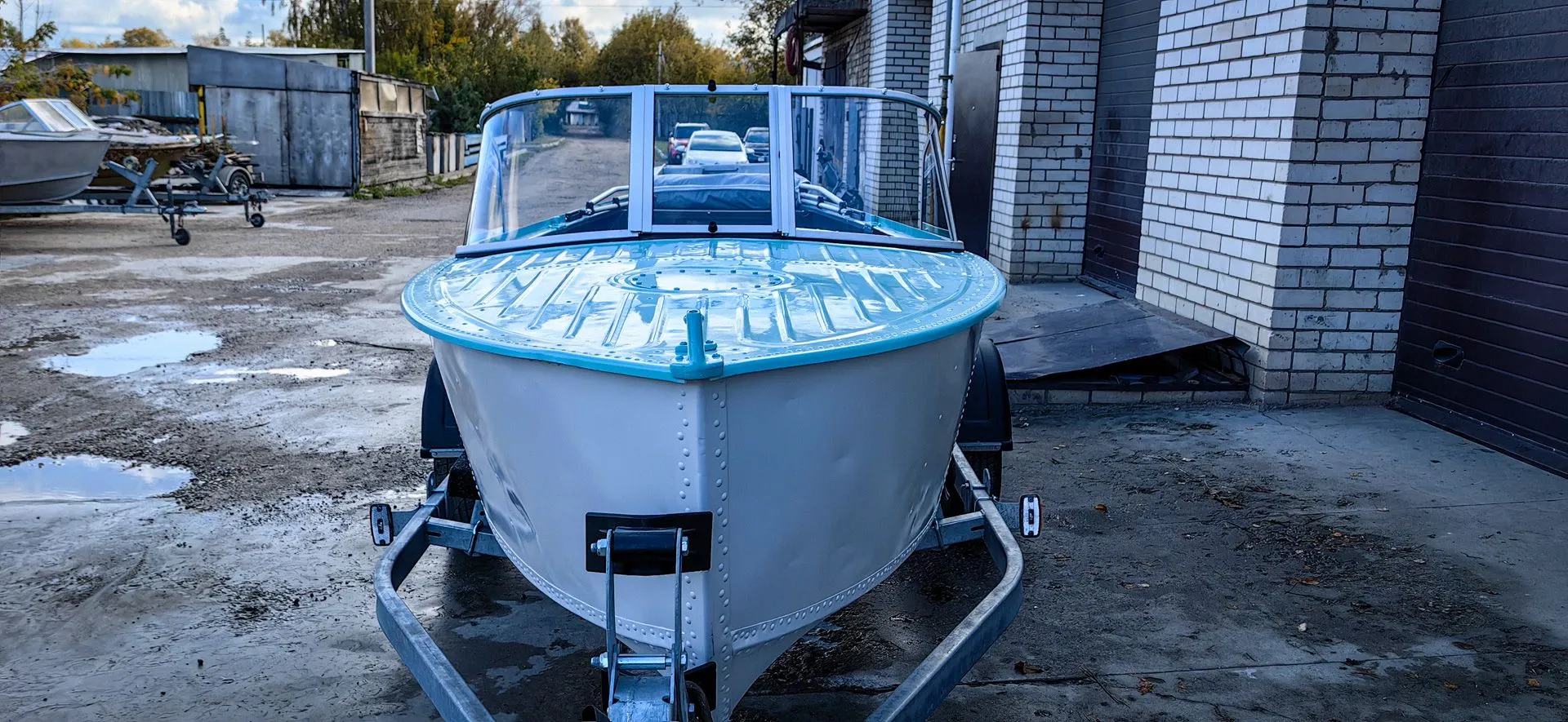 Мало какая модернизация лодки обходится без нового ветрового стекла и в данный случай не стал исключением. На лодку было установленно новое ветровое стекло модели «Комфорт», с остеклением из монолитного поликарбоната, рамкой из анодированного алюминиевого профиля и удлинёнными боковинами.
