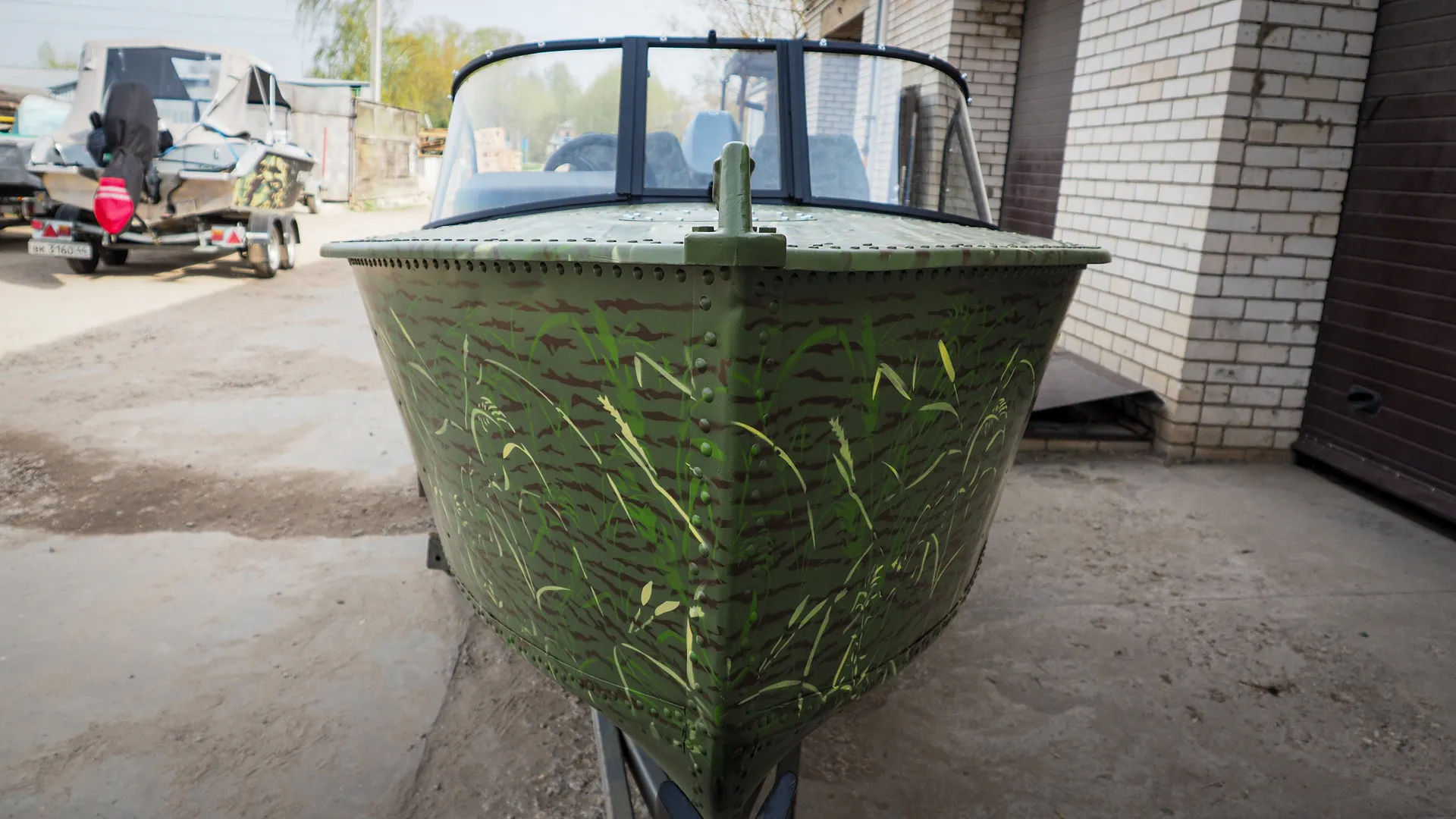 —(2024) Казанка М Ветровое стекло Комфорт с боковиной Классик, покраска в зеленый камуфляж